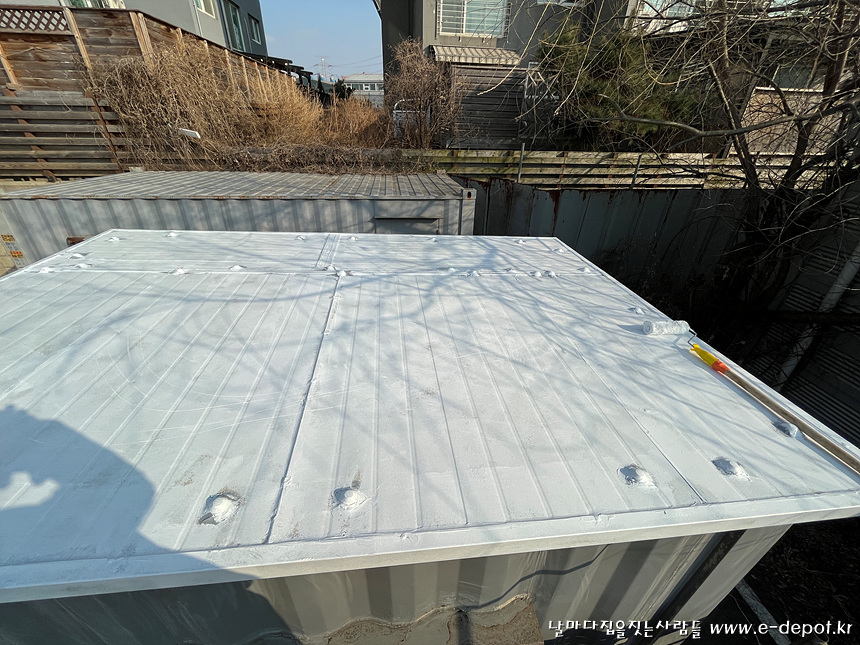 먼저 사용하던 분이 태양열을 차단하기 위해 콘테이너 지붕위에 50T 단열판넬을 얹어 놓은것 같습니다.