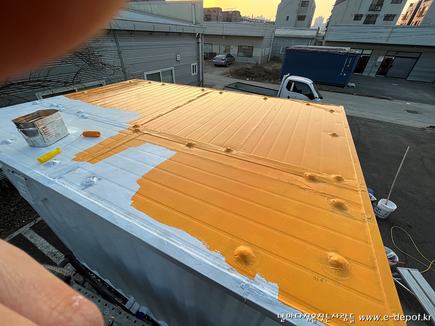 콘테이너 외부 벽 1차 포라이머 도포사진입니다.