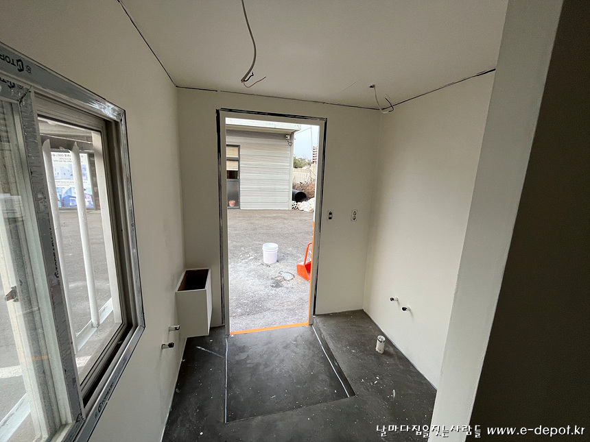 바닥 미장이 양생이 된 후 석고보드에 퍼티작업.