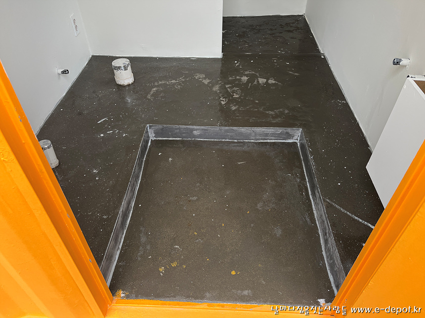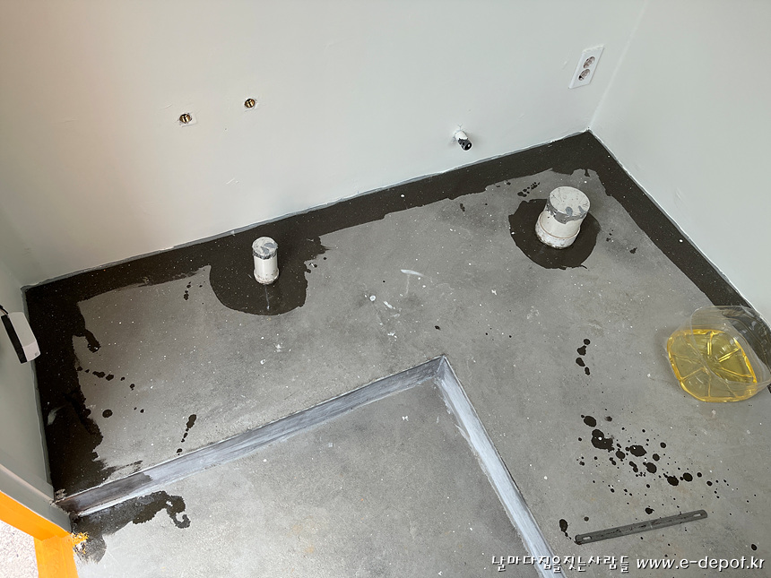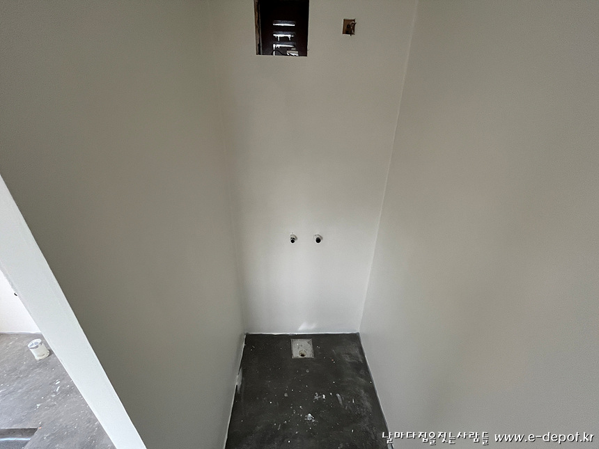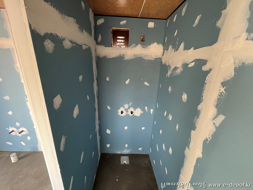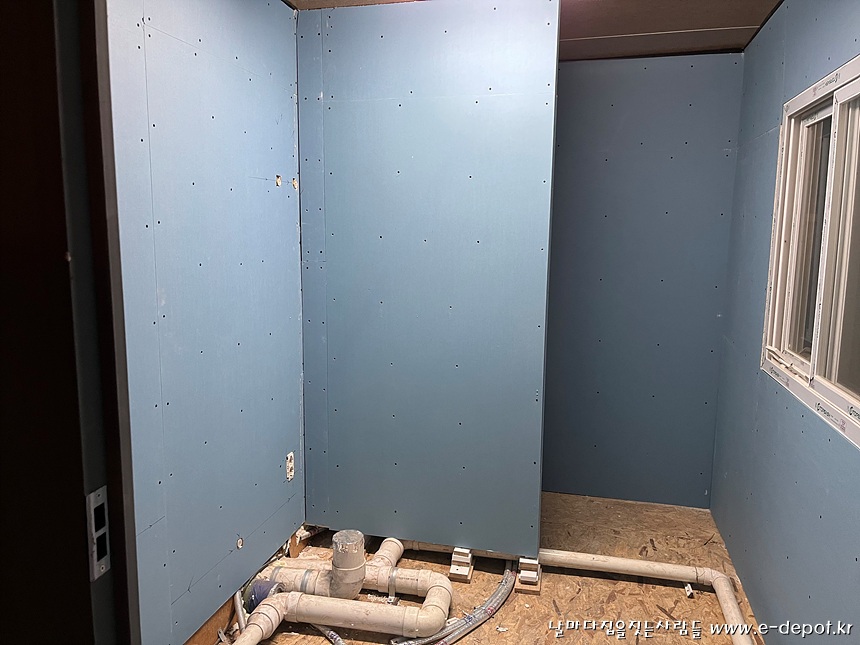 외부와 샤워칸막이벽 모두 방수석고를 덧붙여 마무리 하였습니다.