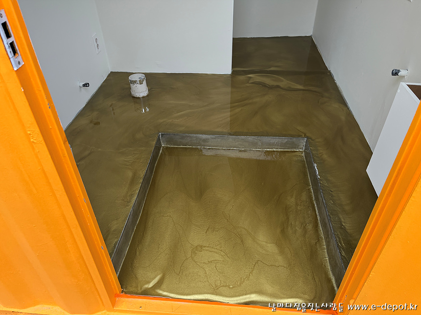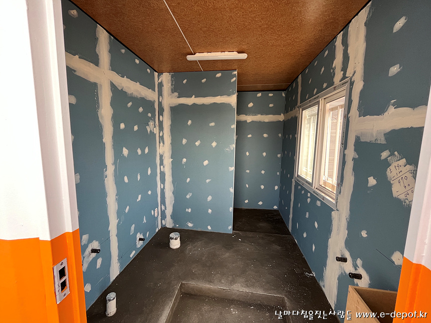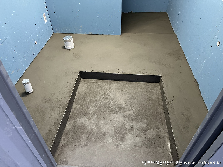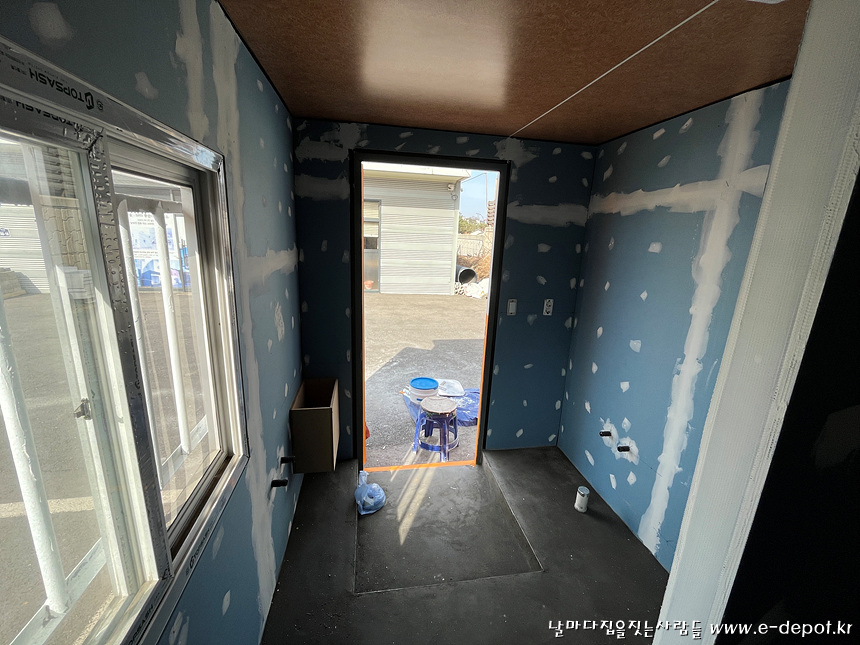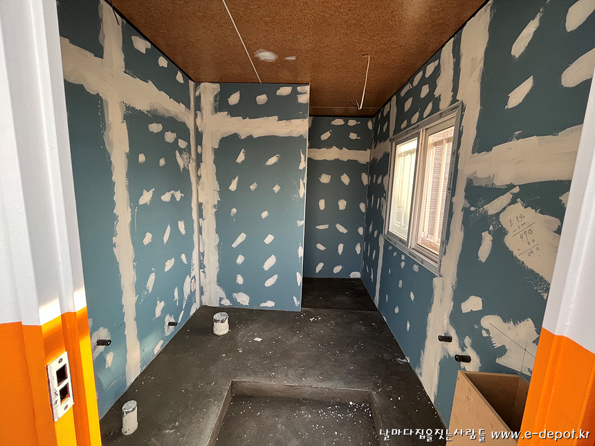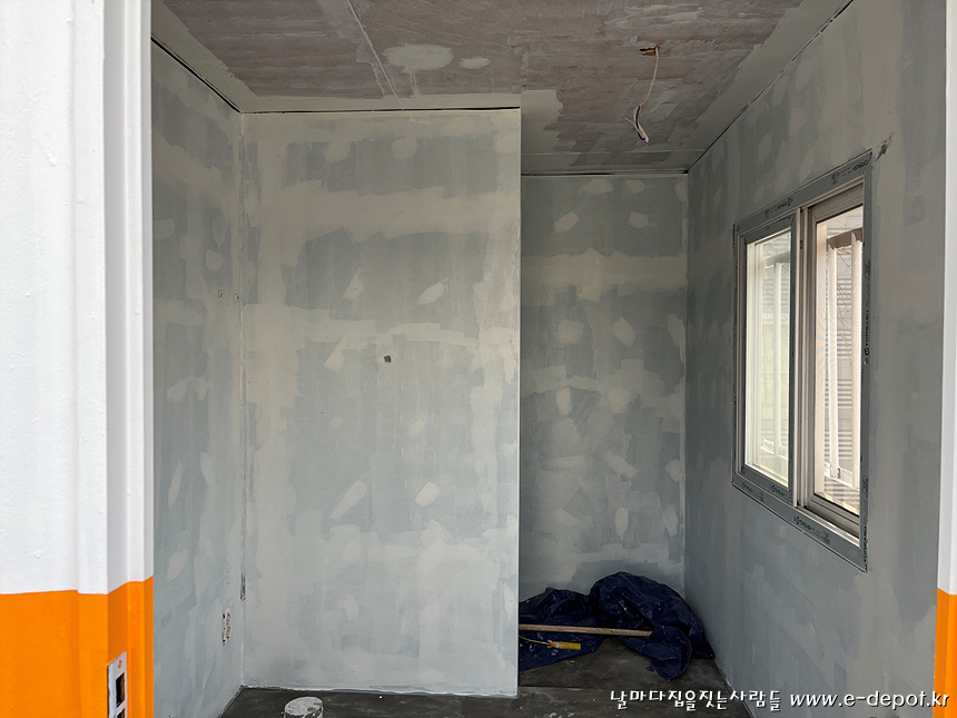 바닥 미장이 양생이 된 후 석고보드에 퍼티작업.