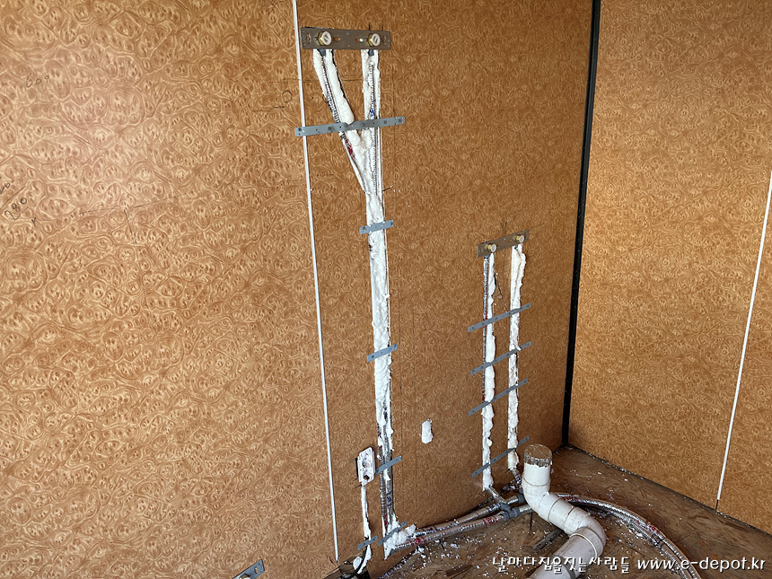 급수배관은 외부로 노출되지 않도록 벽체에 매립 완료~!
