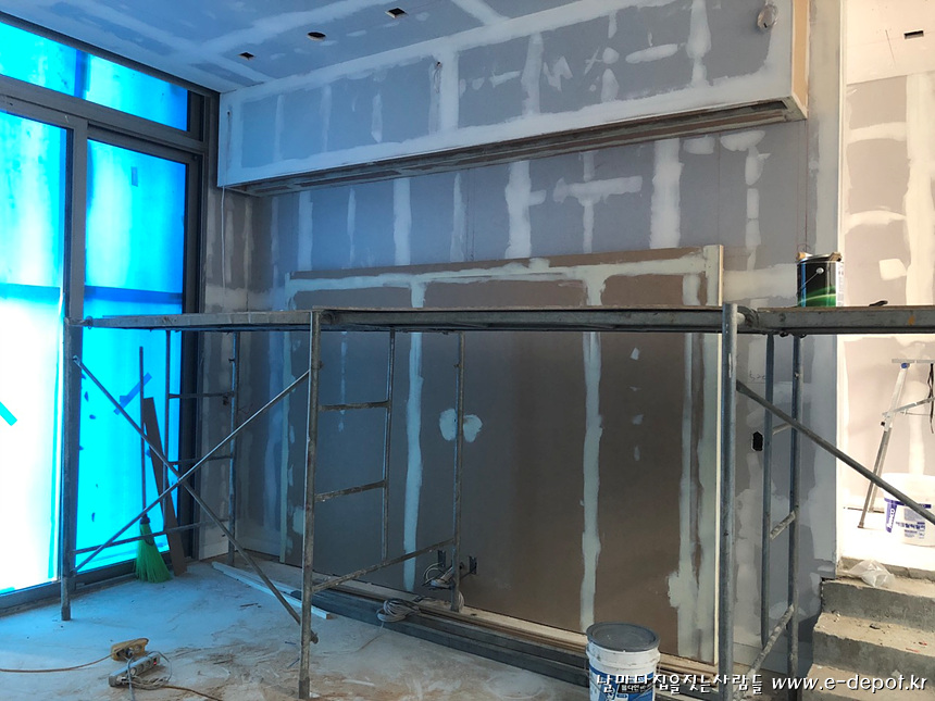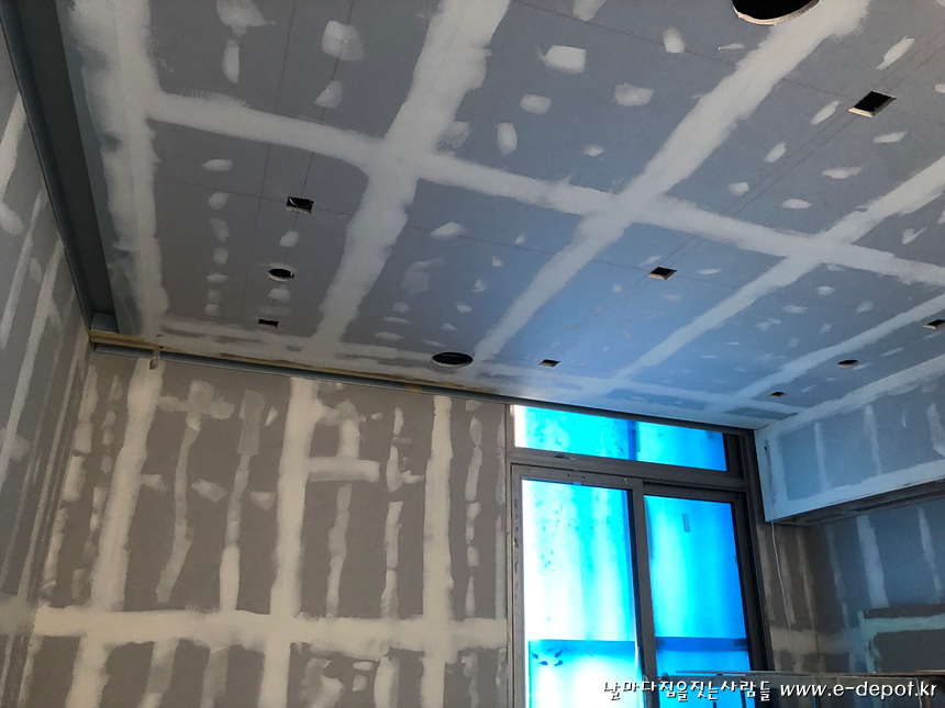 석고취부 후 페인트 줄퍼티 시공.