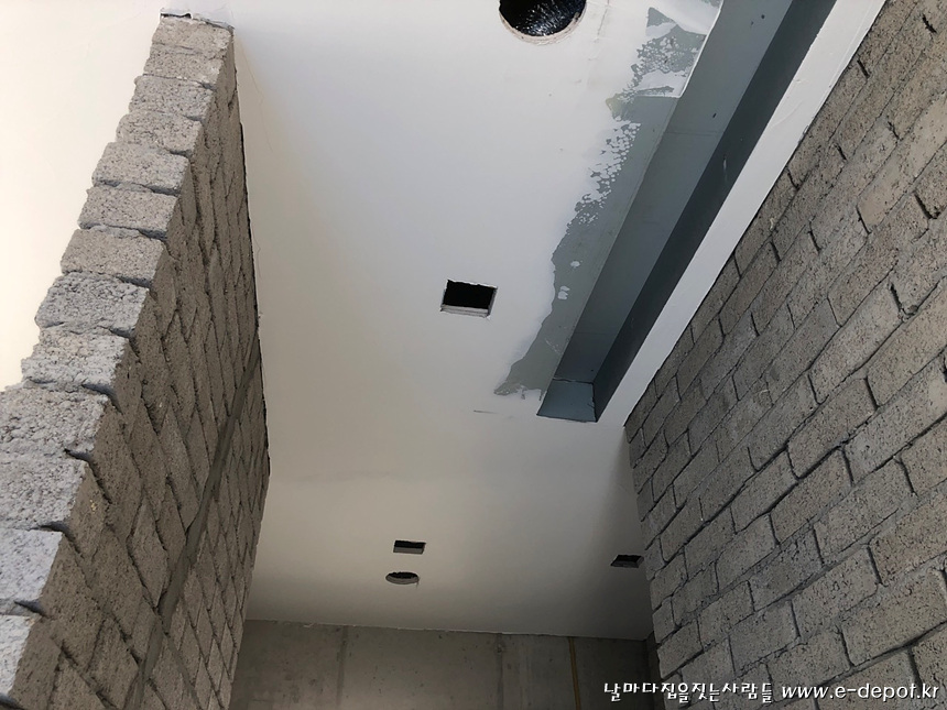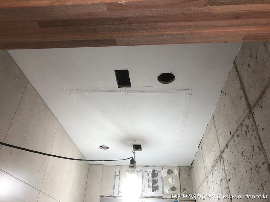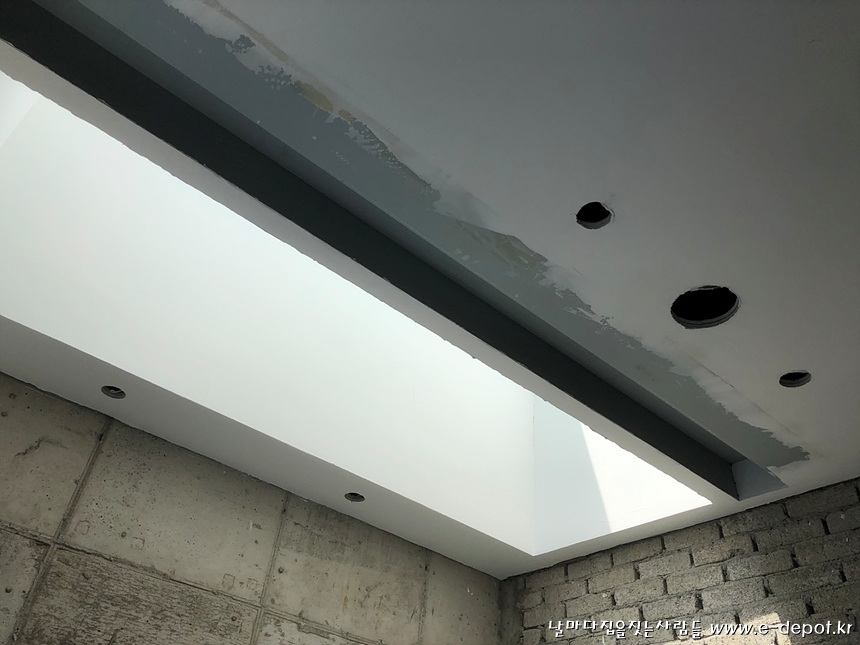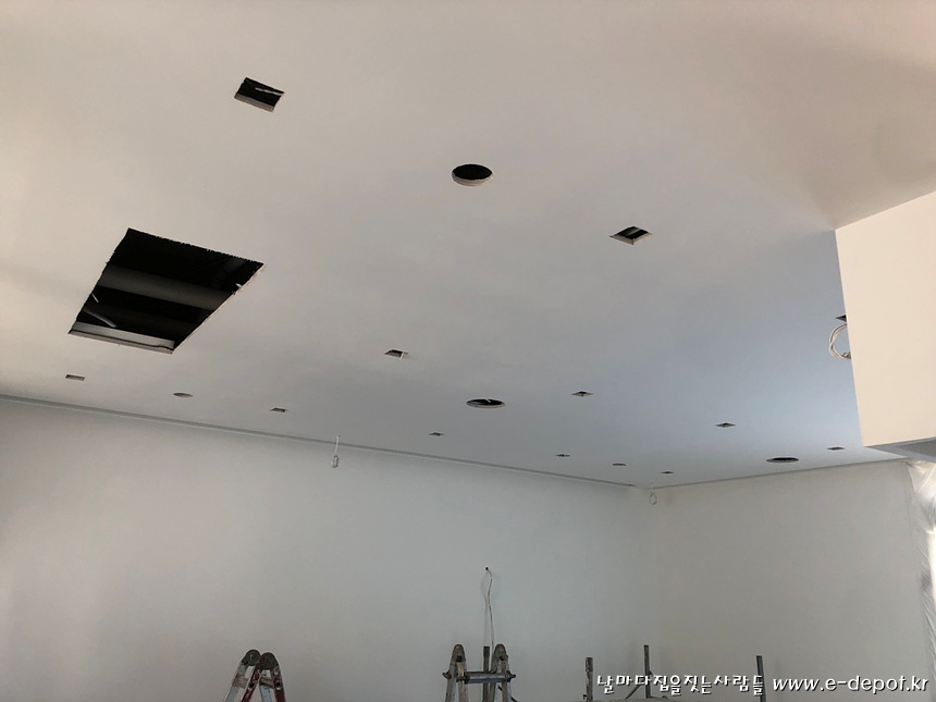 천정 석고취부 후 매입조명등 타공.