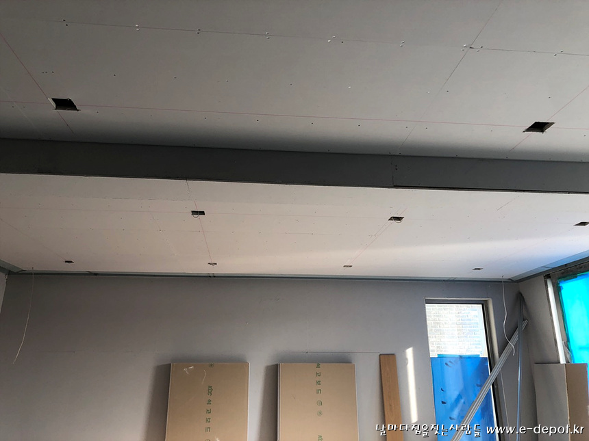 날마다집을짓는사람들의 전원주택신축 단열재보강 후 석고보드시공 및 페인트공사 줄눈퍼티,올퍼티과정이었습니다.