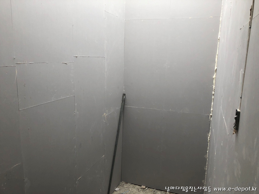 내부벽 떡가베 석고취부를 위한 하지작업사진.