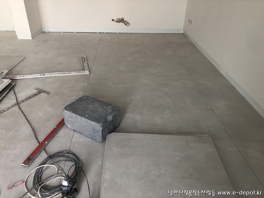 1층 서재바닥 타일시공 사진.