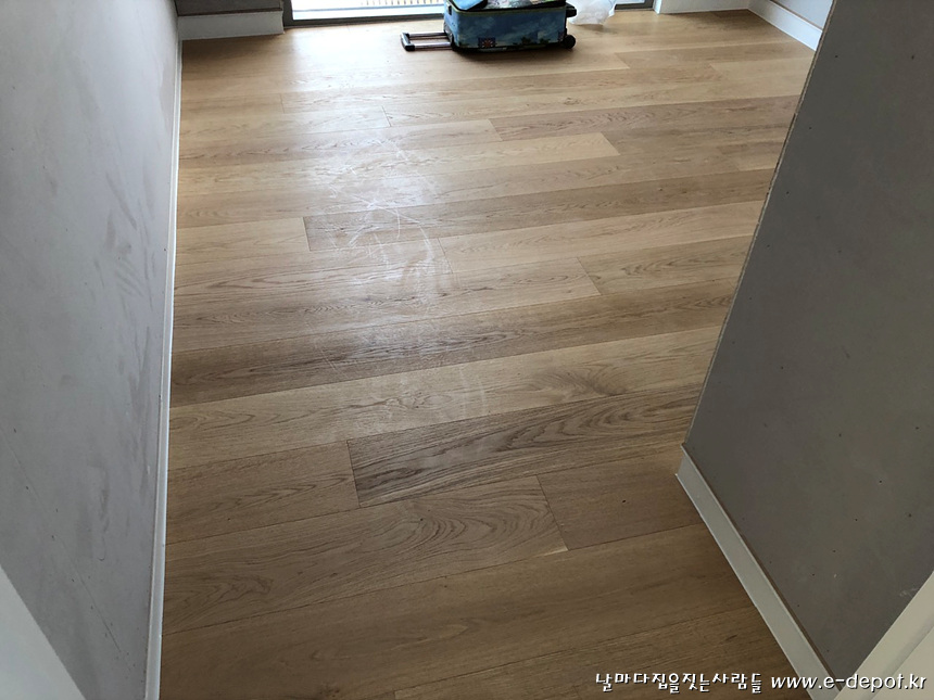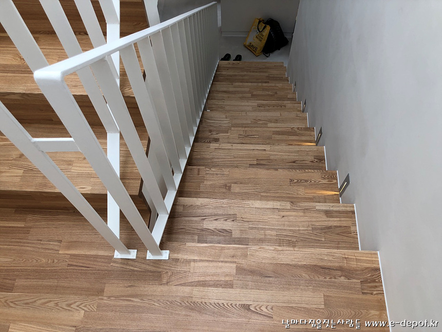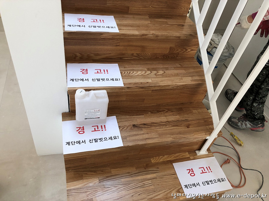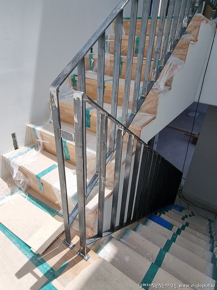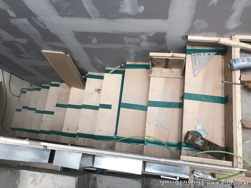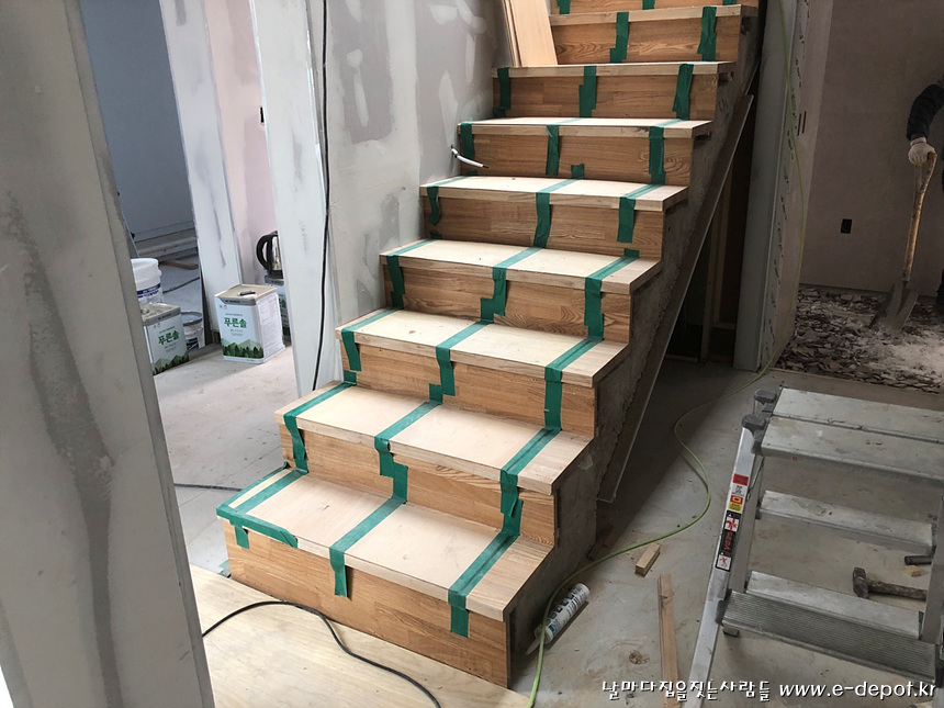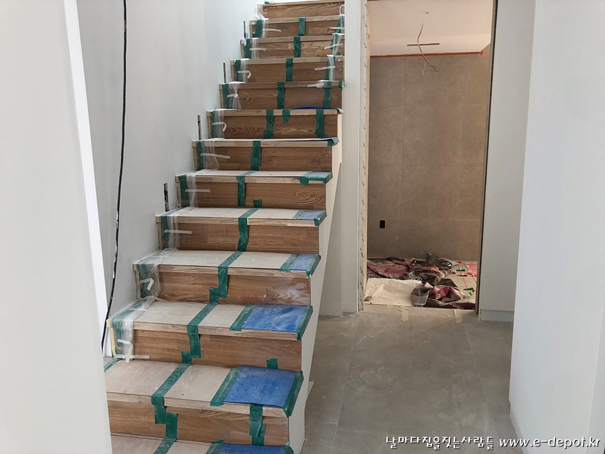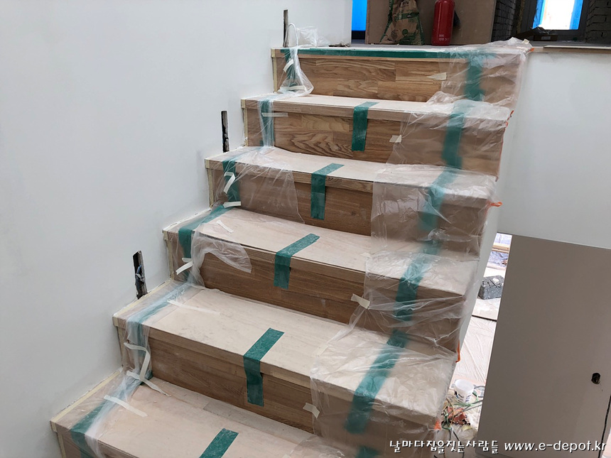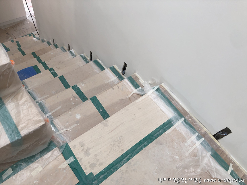 계단판 작업을 마무리 한 후 보양작업을 한 사진.