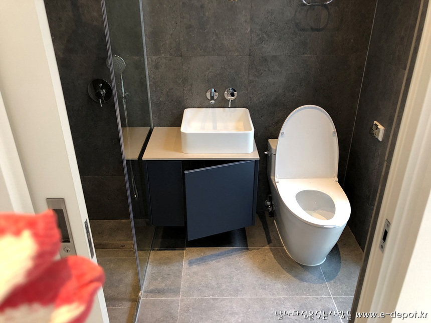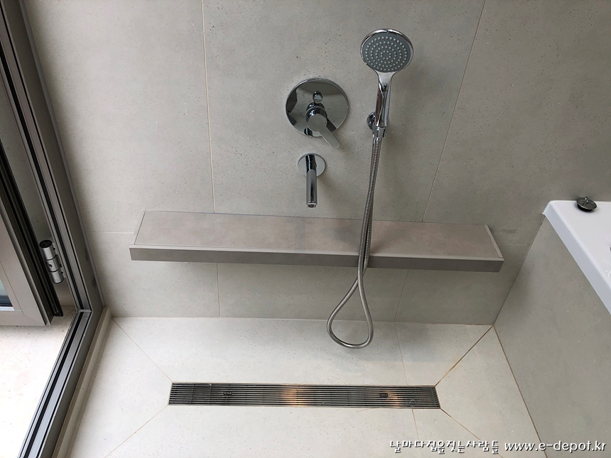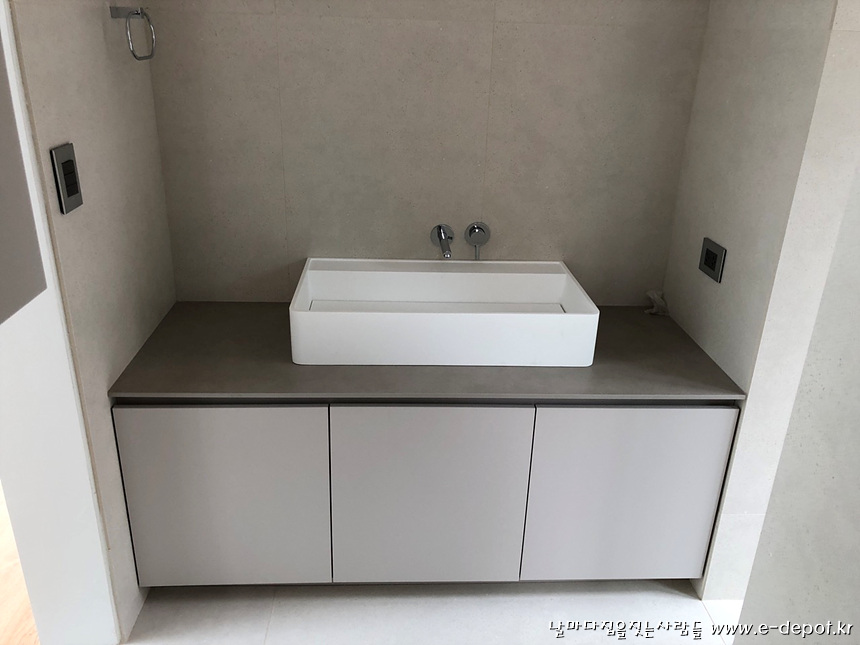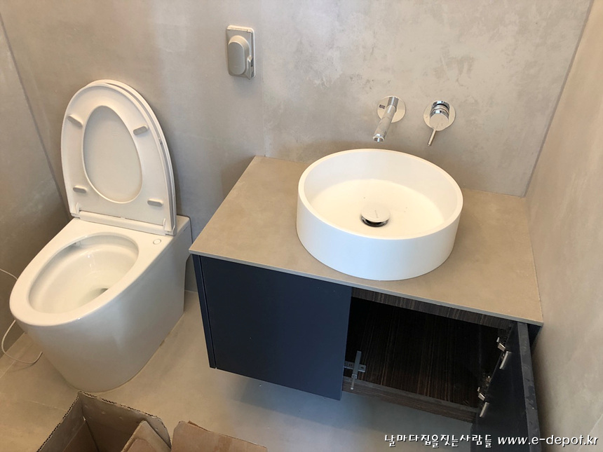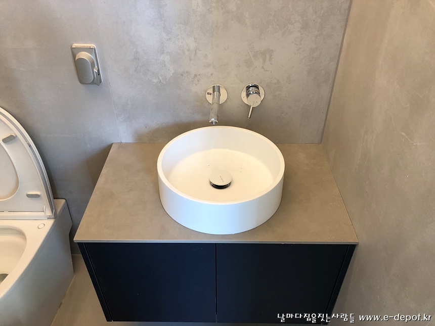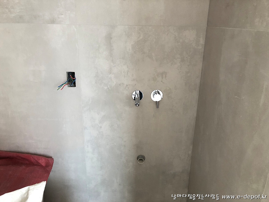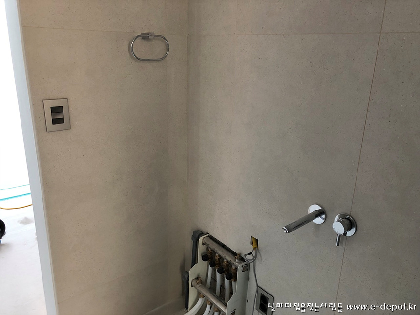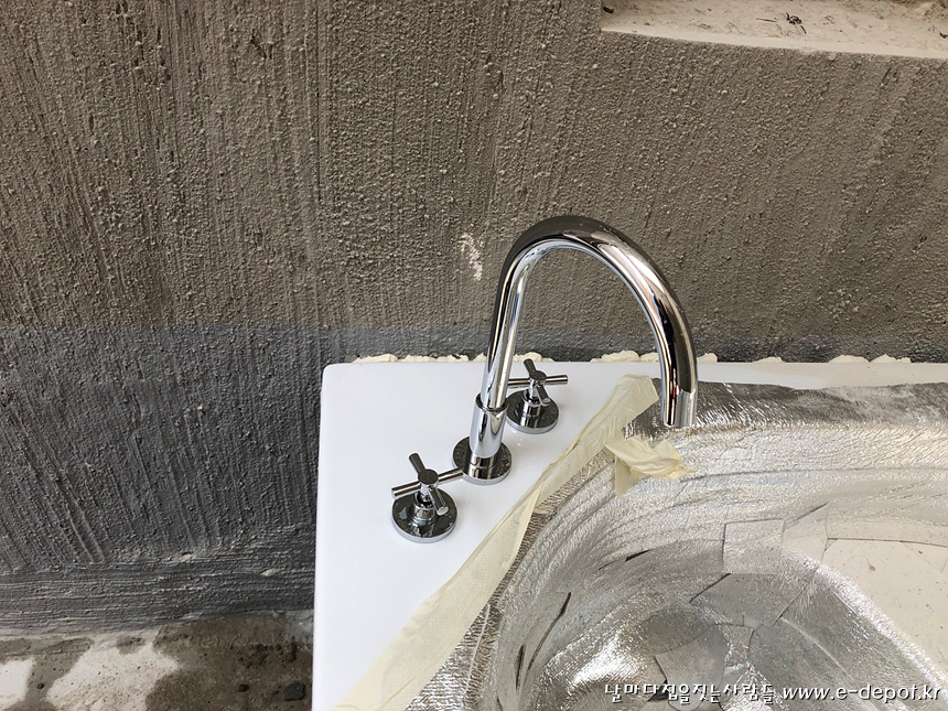 매립형 세면수전 시공 사진.