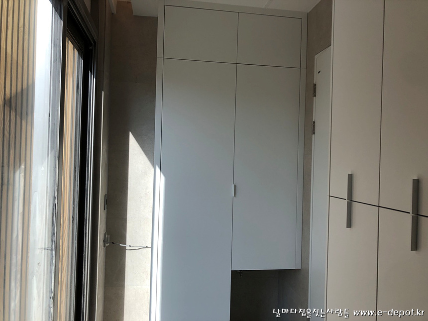 다용도실 수납장 및 선반 설치 사진.