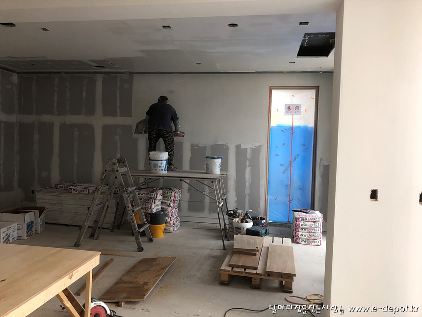 1층 서재 올퍼티 작업 사진.
