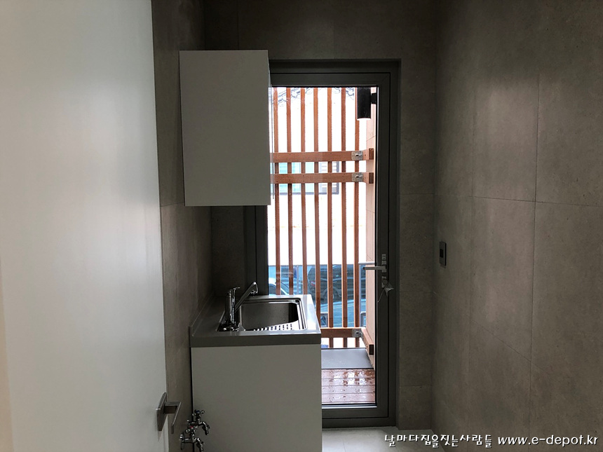 다용도실 보조 씽크대 설치 사진.