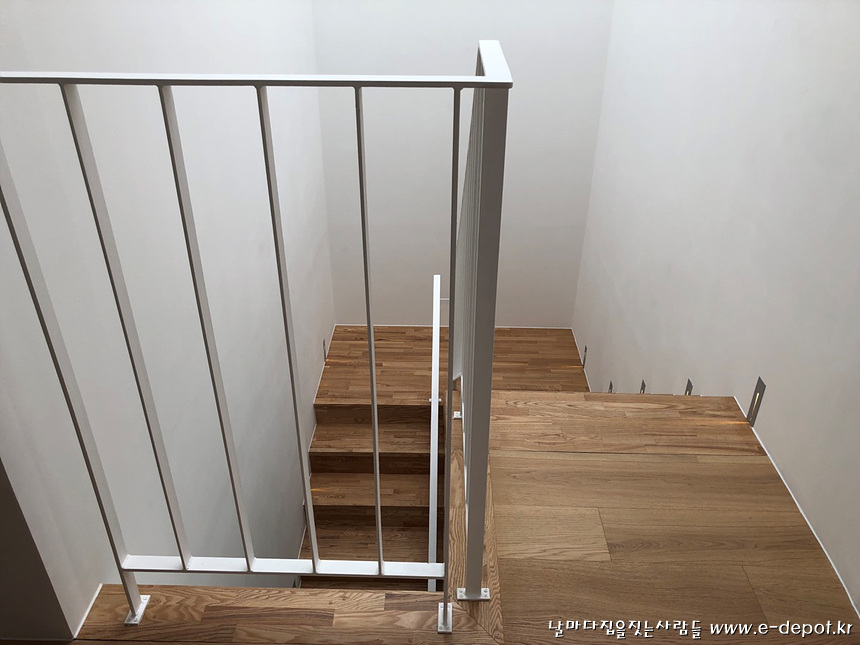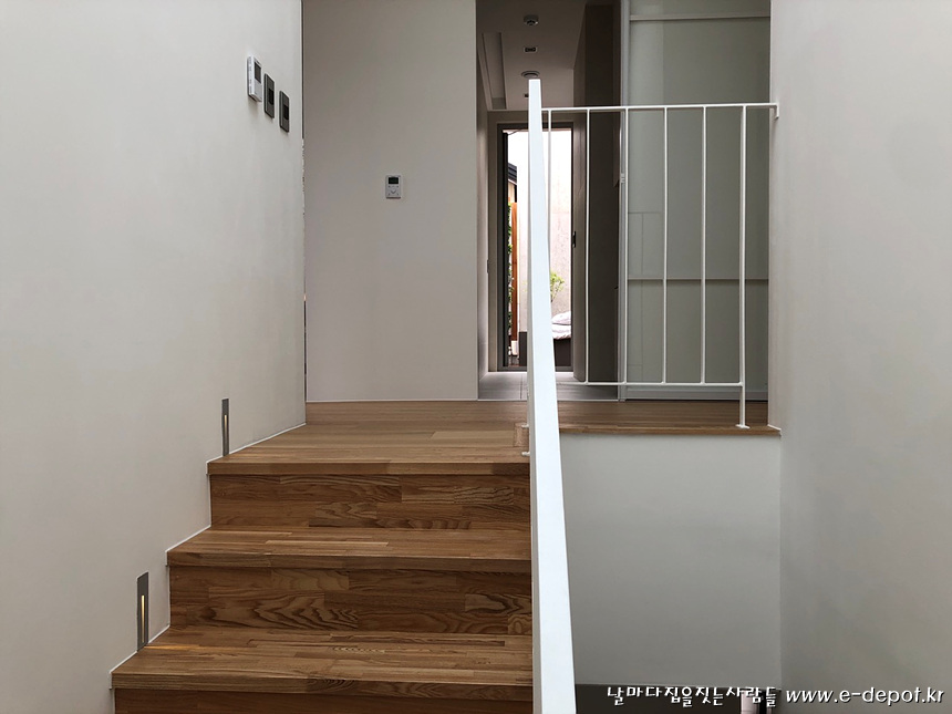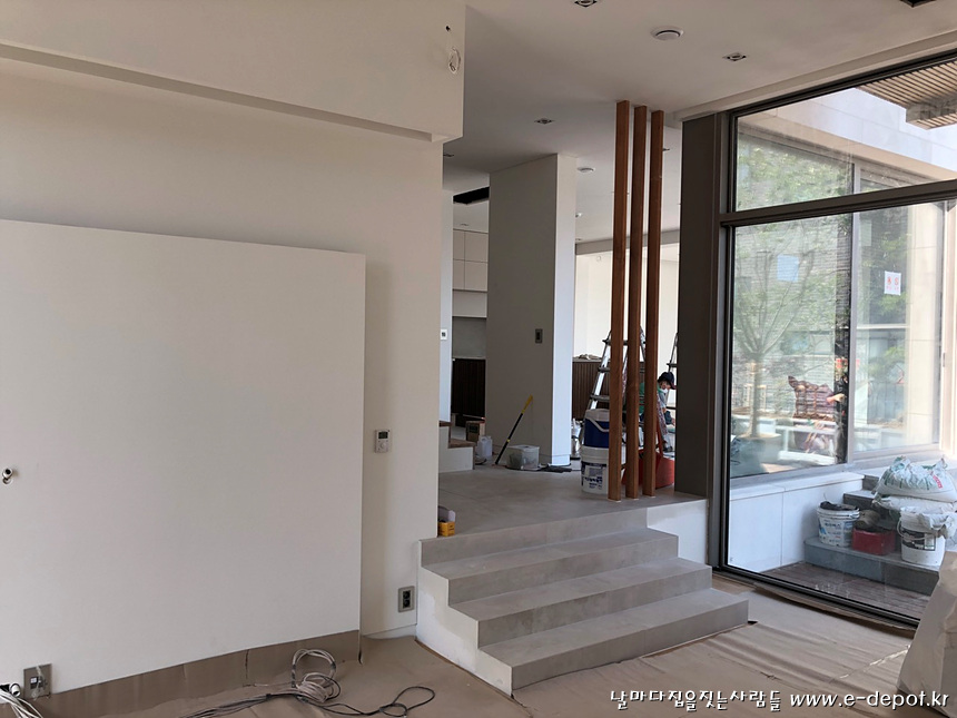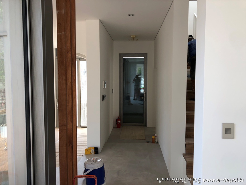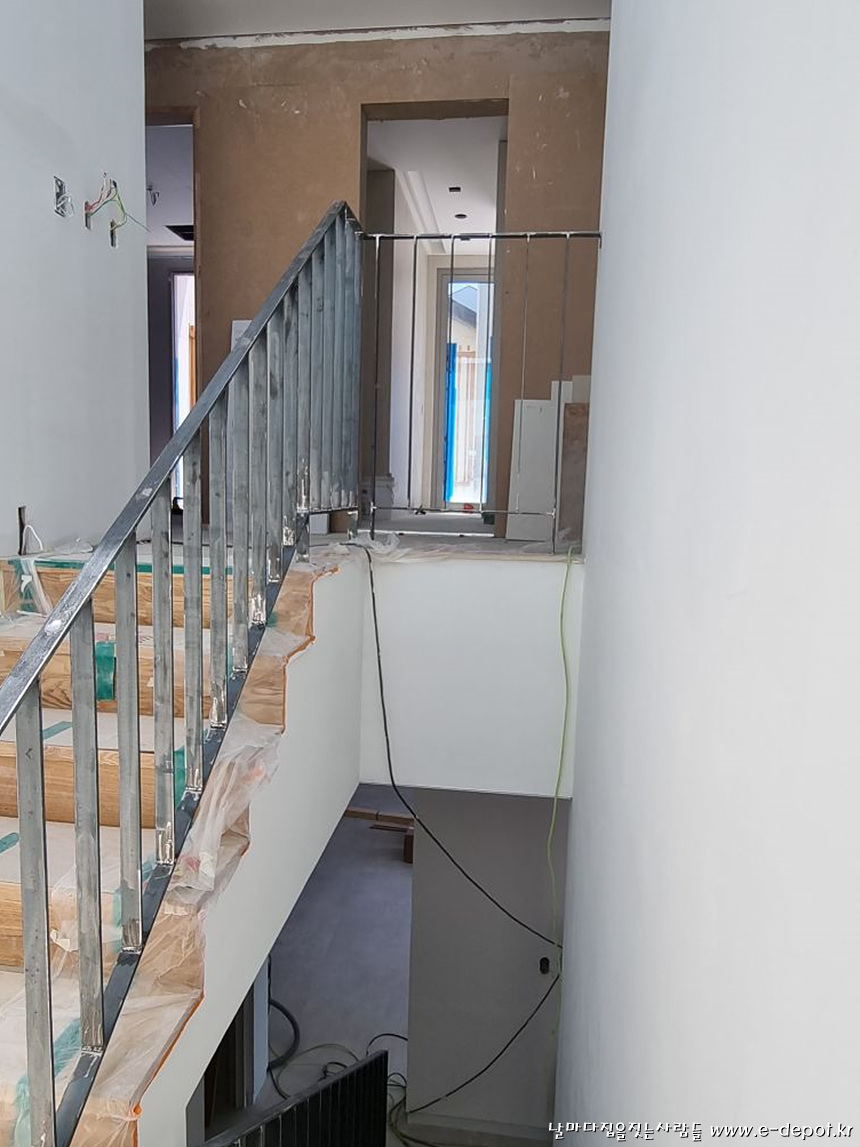 전원주택 내부마감 시공사례 중 계단실조성,타일붙임,마루시공,페인트도색,가구설치