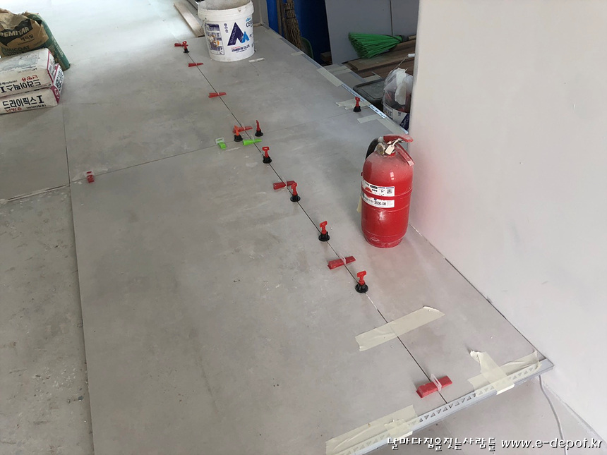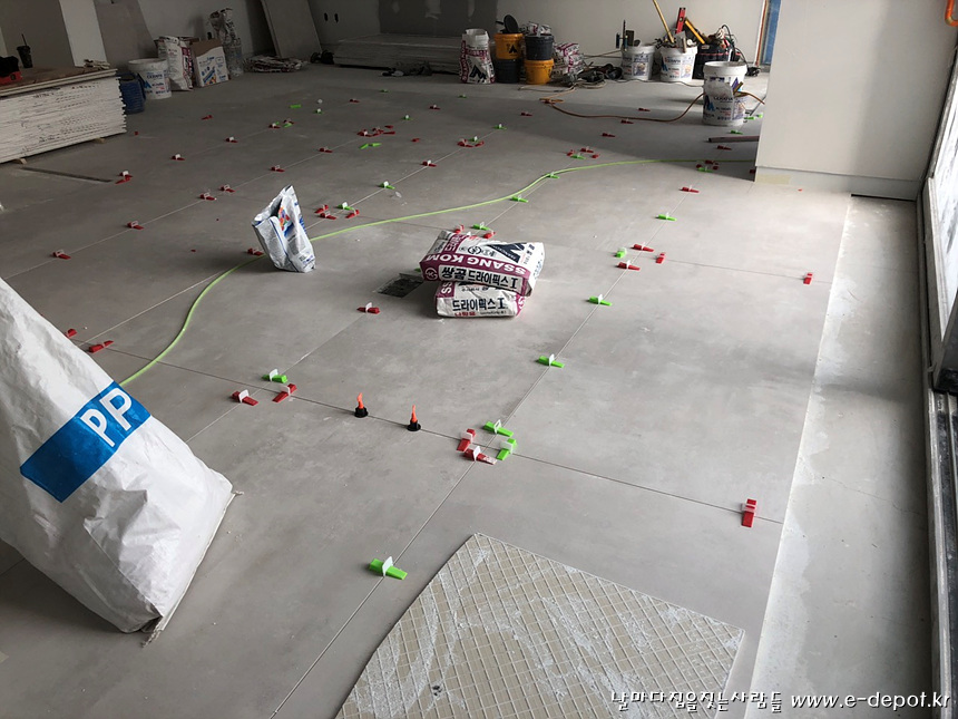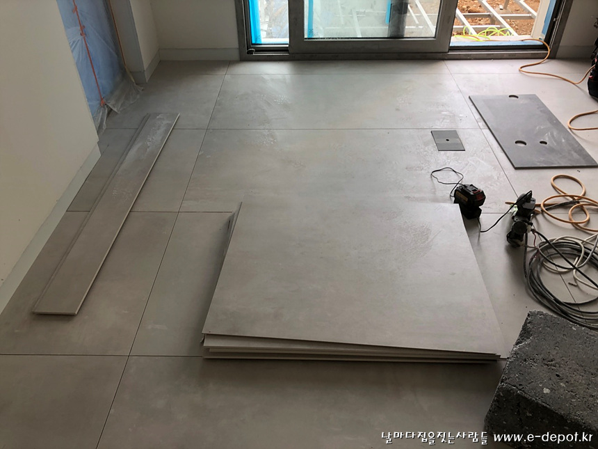 1층 서재바닥 타일시공 사진.