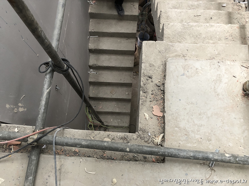 마감전 계단실 골조 사진.
