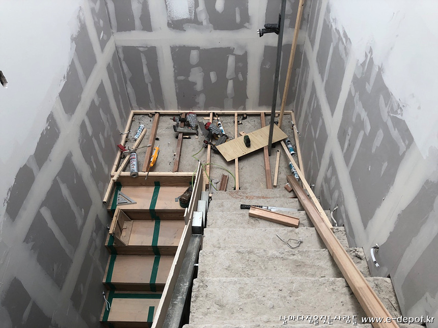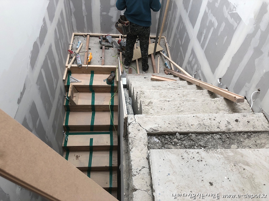 소송각재를 이용한 계단하지작업사진.
