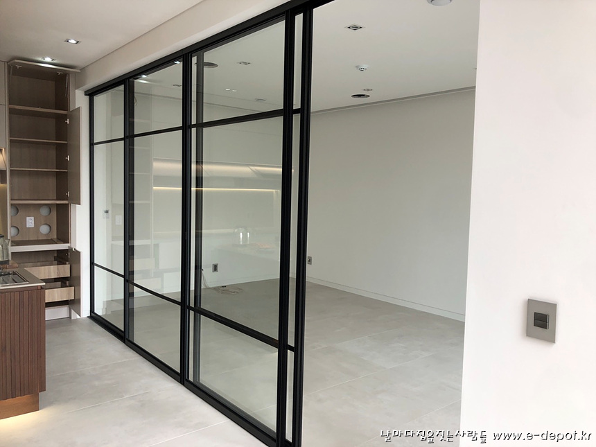 서재 슬라이딩 도어 설치 사진.