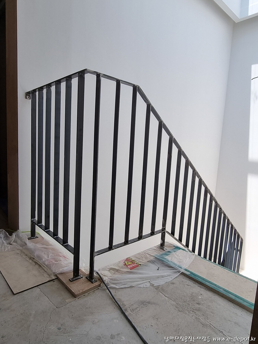 계단 난간에 도색을 마친 사진.