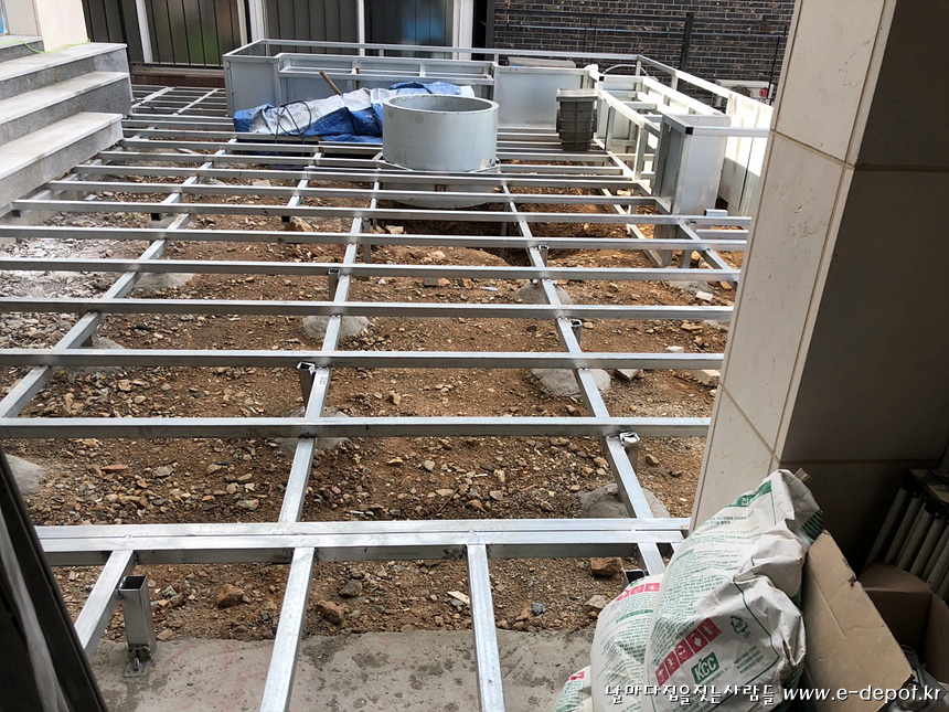 전원주택 외부계단시공, 투수블럭깔기, 테라스 데크시공등 외부마감공사 과정입니다.