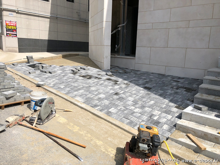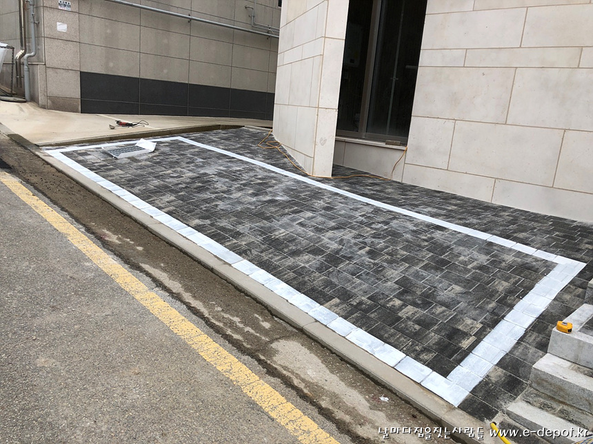 주차장과 접하는 부위는 경계석과 투수블럭을 이용하여 기존 계단과 연결하였습니다.
