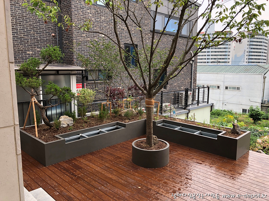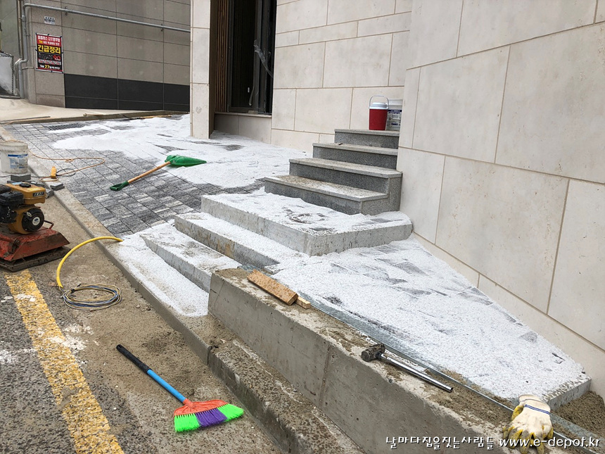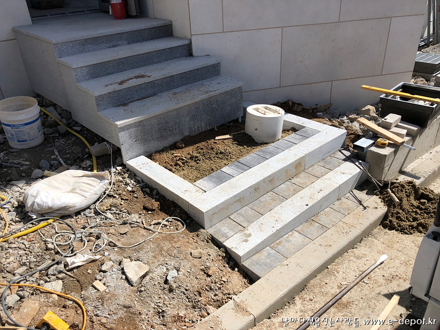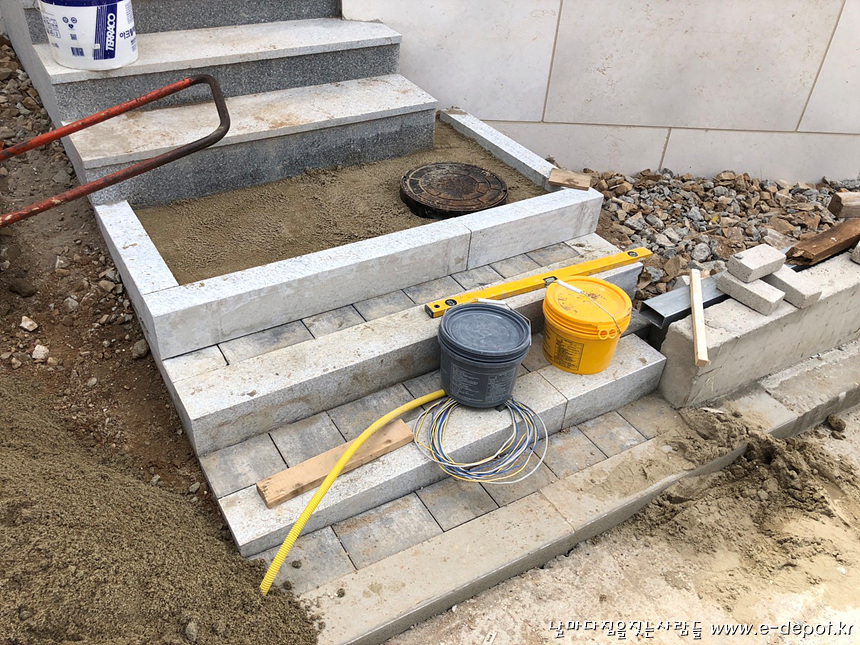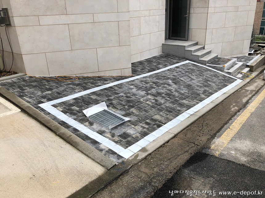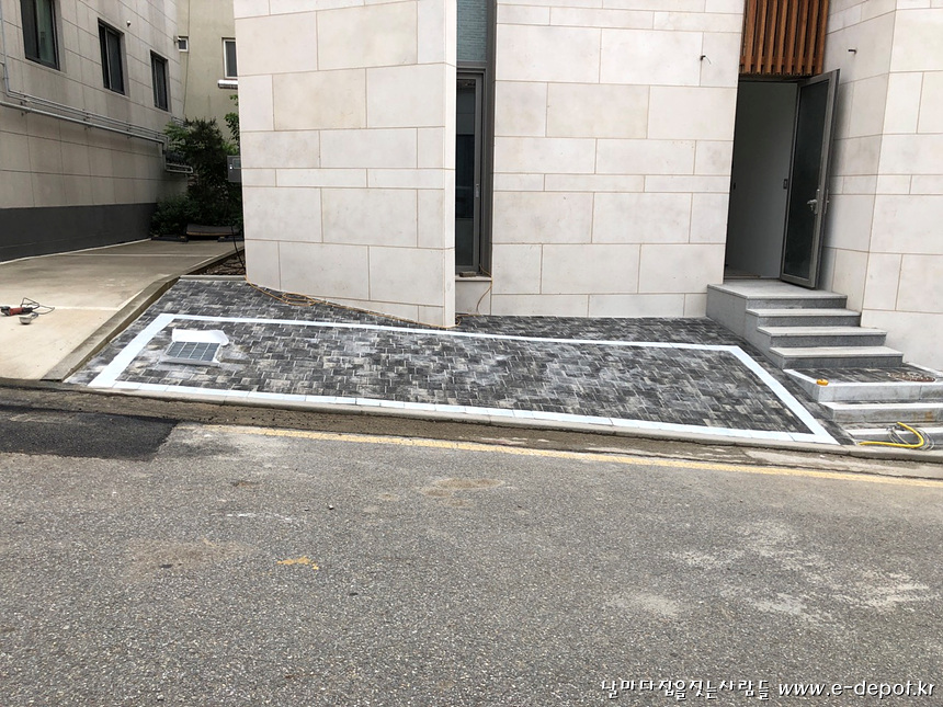 주차장과 접하는 부위는 경계석과 투수블럭을 이용하여 기존 계단과 연결하였습니다.