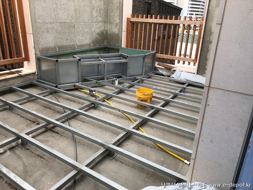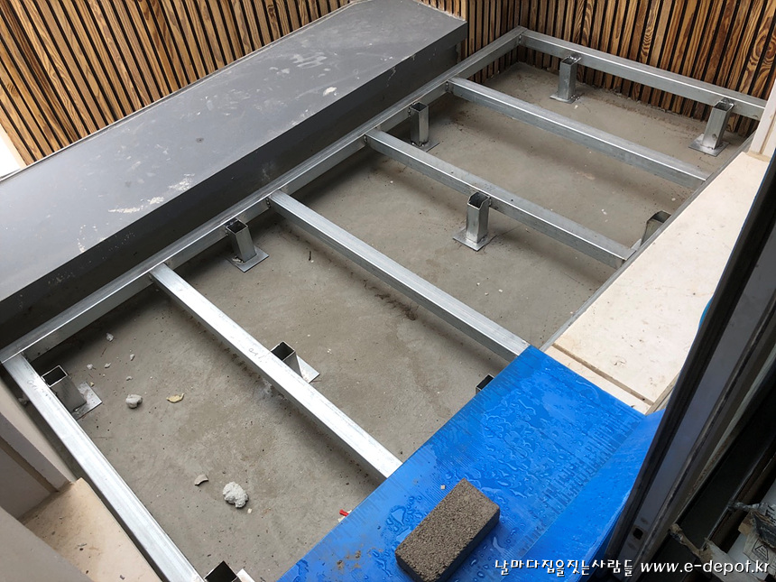 전원주택 외부계단시공, 투수블럭깔기, 테라스 데크시공등 외부마감공사 과정입니다.