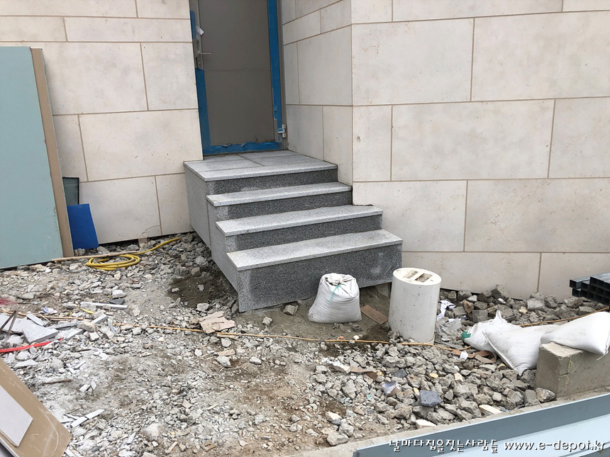 날마다집을짓는사람들의 전원주택신축::외부계단,투수블럭깔기,테라스데크시공, 외부마감 과정이었습니다.
