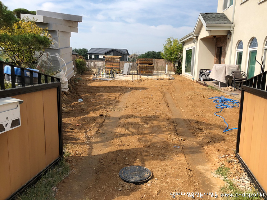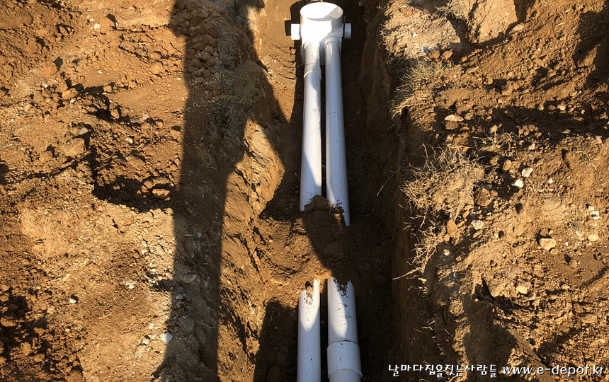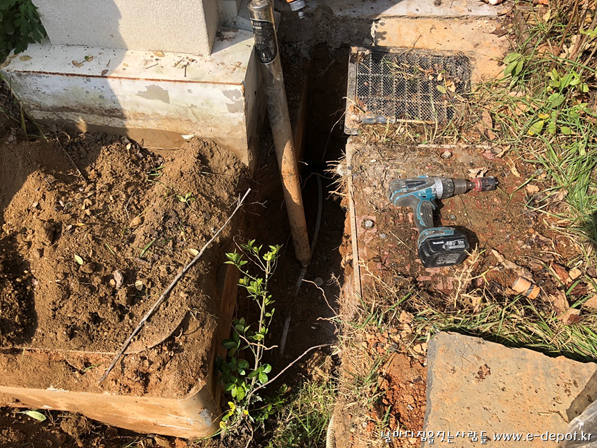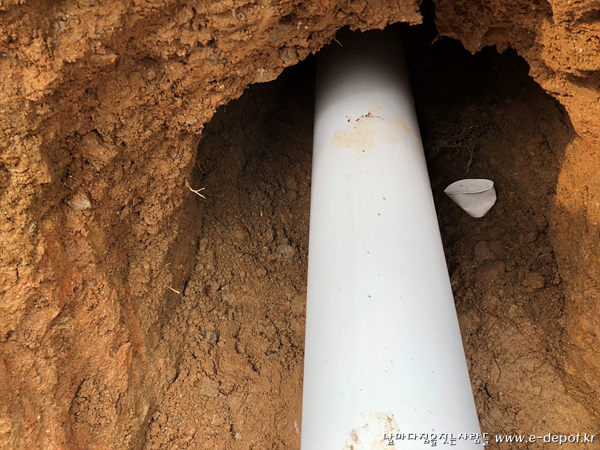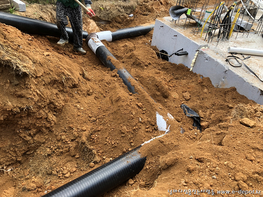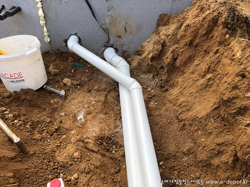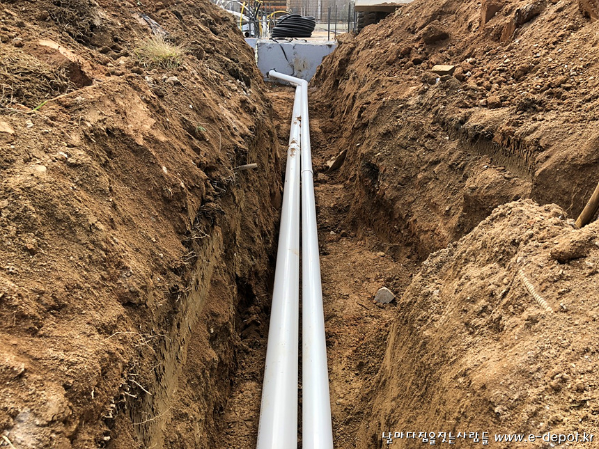 외부배관작업과 되메우기 작업을 마무리 한 사진.
