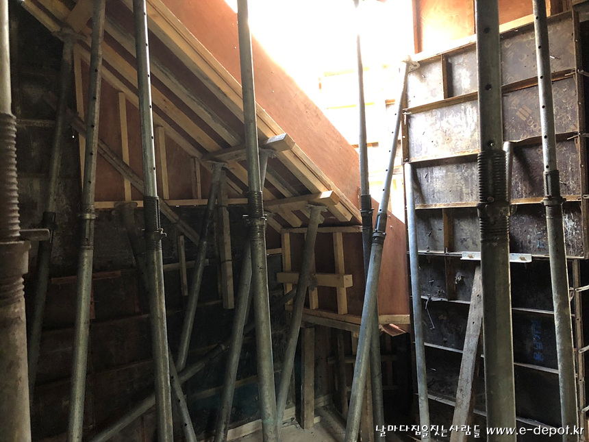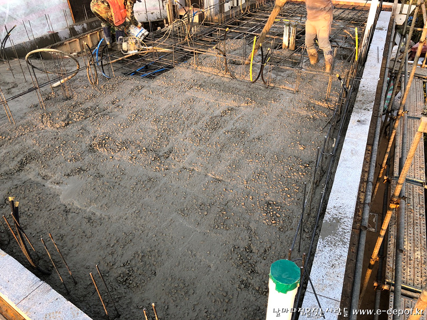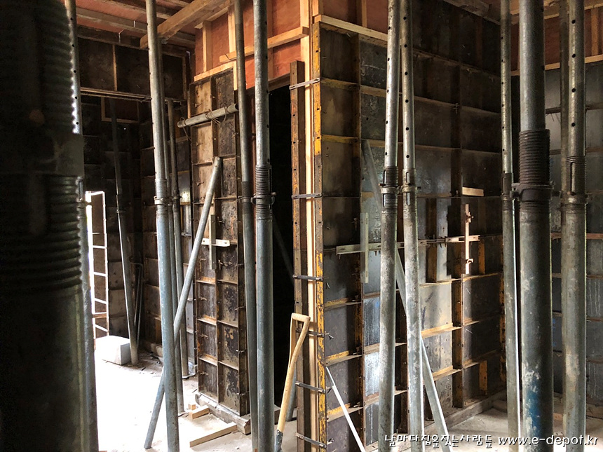 거푸집 하부 보강작업이 마무리 된 후 콘크리트 타설을 진행하면 되겠습니다.