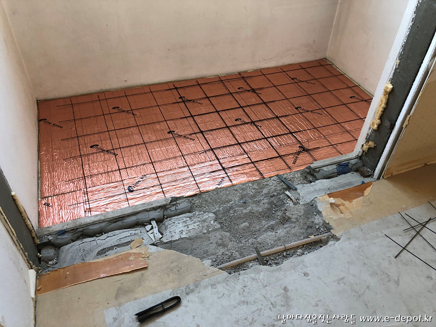 발코니 확장을 하는 부위는 바닥난방을 연장하여 작업합니다.