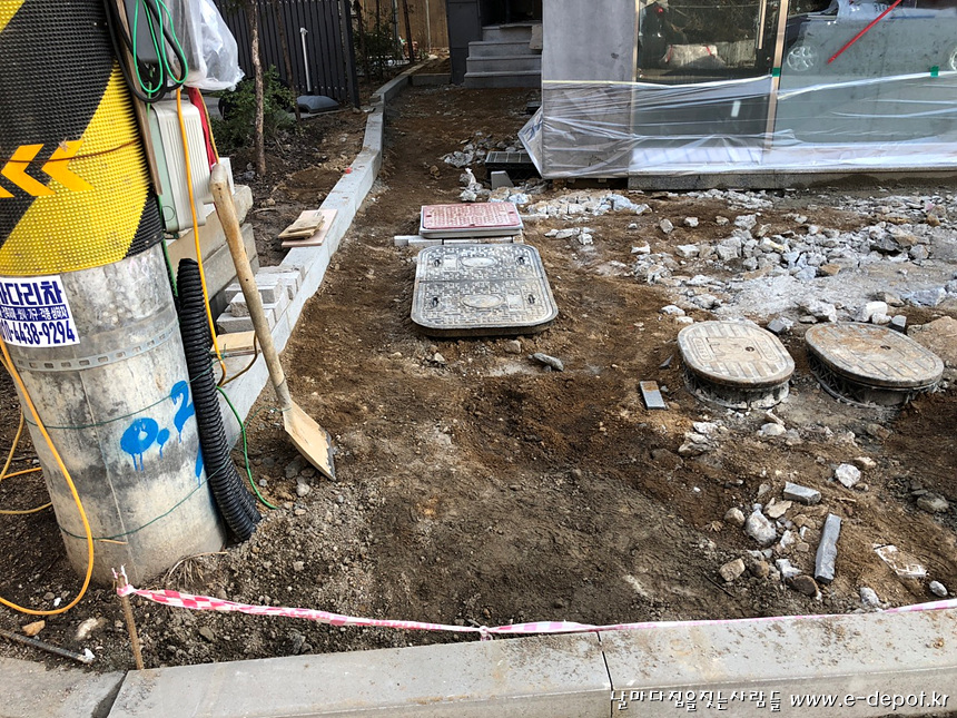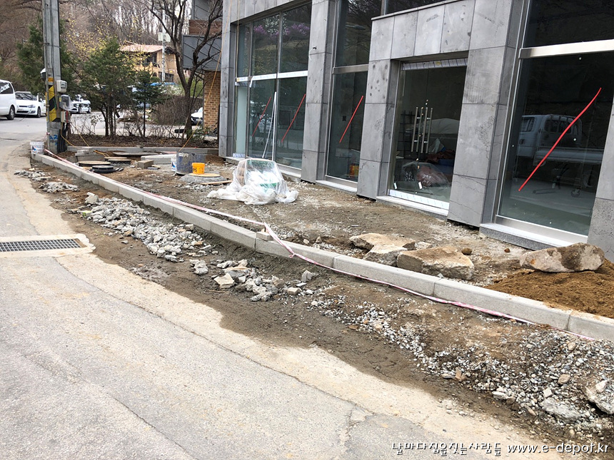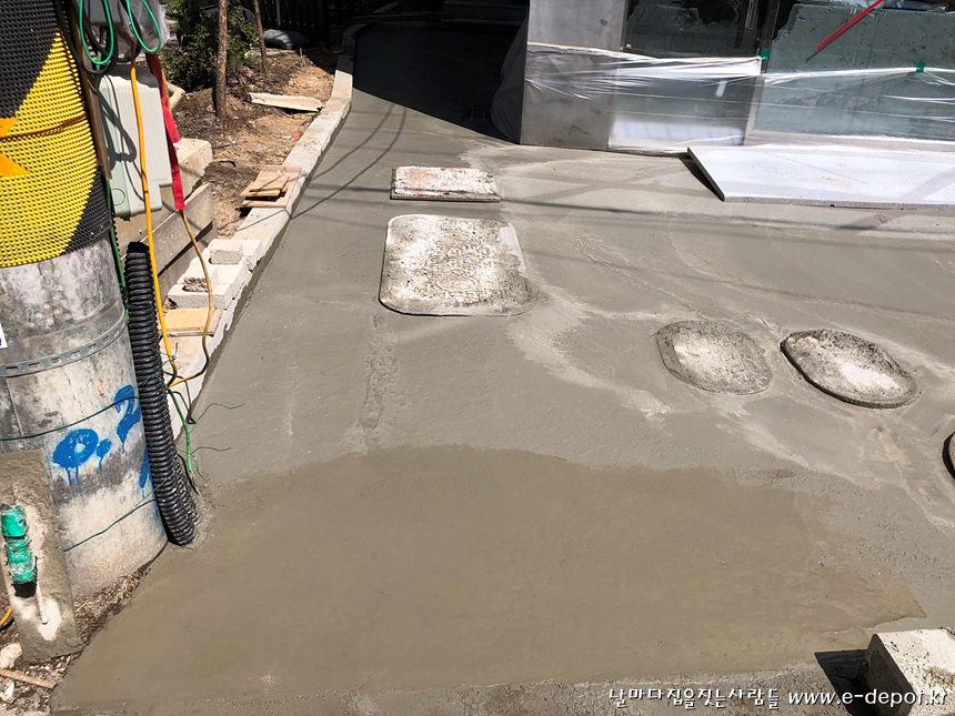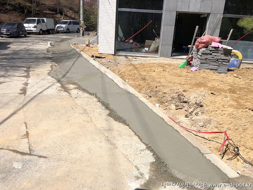 외부 바닥 경계석시공 후 콘크리트 타설.