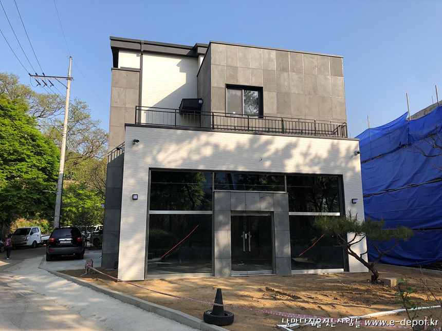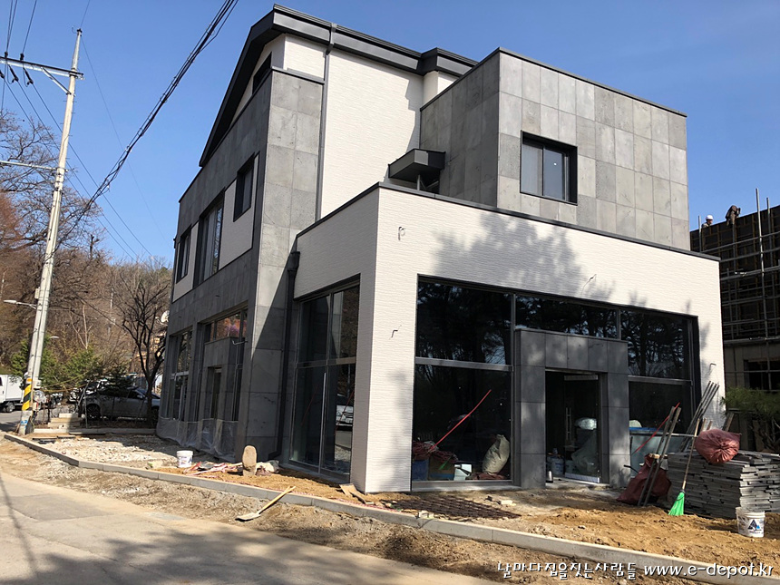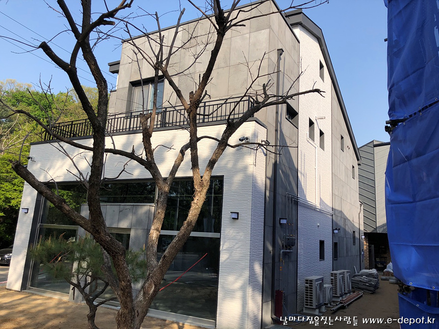 날마다집을짓는사람들의 상가주택신축.단열,방수보호몰탈,유로폼노출콘크리트,마당콘크리트타설,안전난간,오하수벤트설치,현무암,세라믹사이딩시공과정이었습니다.