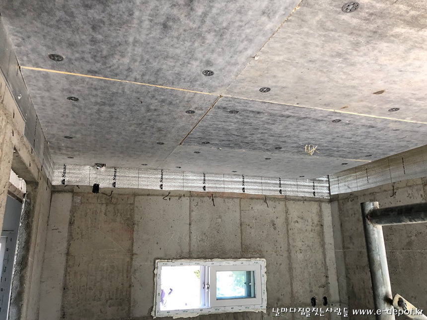 천정부위 단열을 할때 스라브와 직접 맞닿는 외부옹벽부분은 외기열이 전달될 수 있으니 단열보강을 하도록 합니다.
