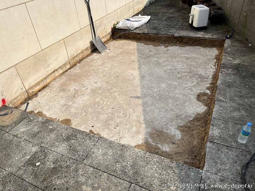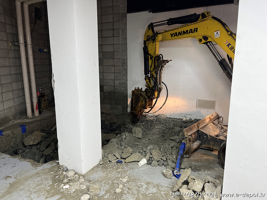 기존의 집수정을 옮기고 위생배관, 전기, 수도 등 기존의 설치되어 있던 배관 및 지장물을 옮기거나 제거해야 합니다.