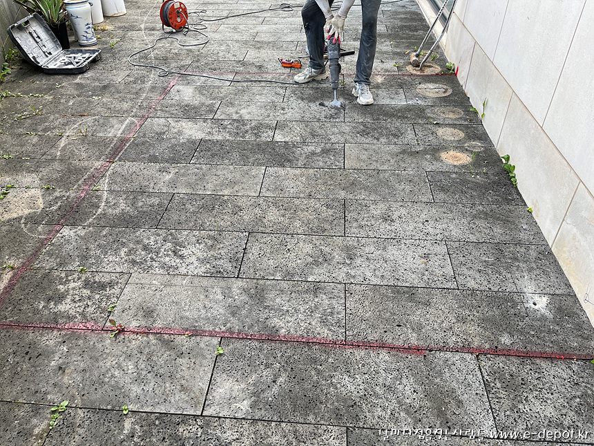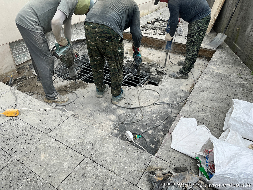 활석할 부위의 마감석을 절개 하고 철거한 사진입니다.