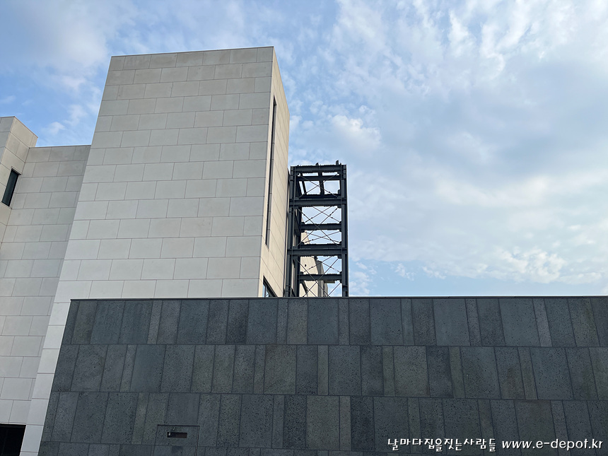 엘리베이터실 철 구조물은 공장에서 제작하여 현장에 반입했습니다.