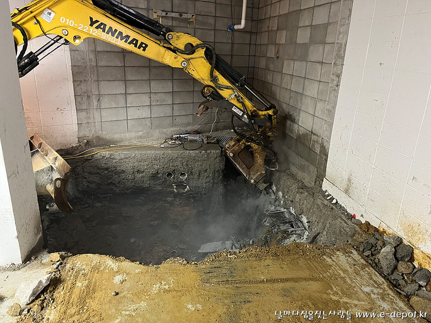 지하 스라브, 즉 지상1층 바닥 엘리베이터가 운행될 공간을 절개해야 합니다.