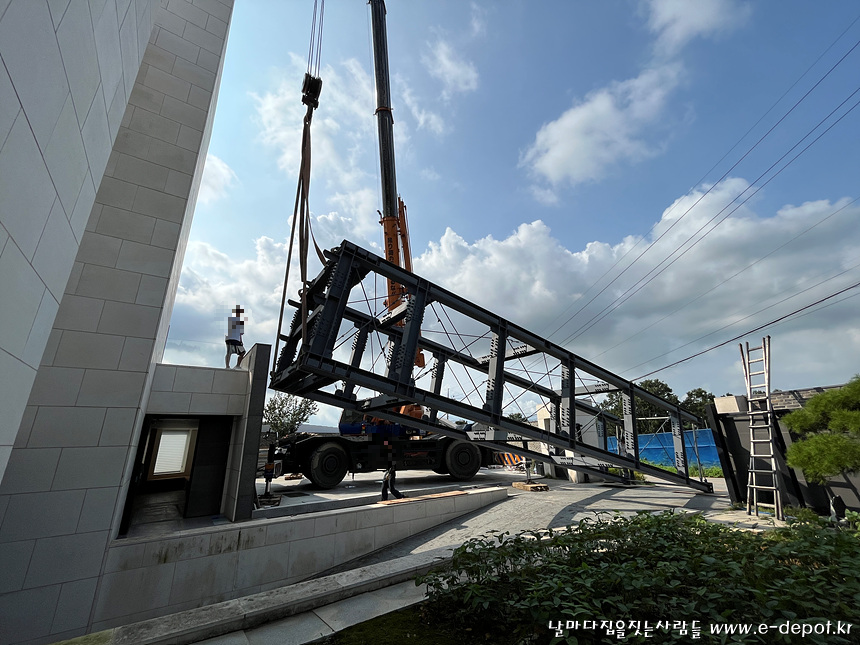 엘리베이터실 조성을 위한 철골조 현장 도착.