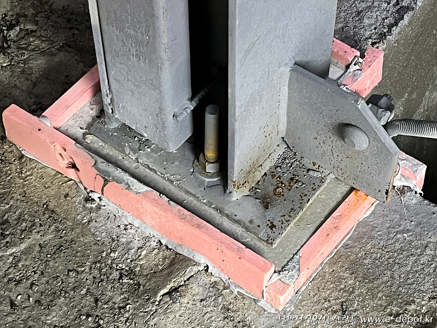 PIT층 철골 접합부위 무수축몰탈 타설 사진입니다.