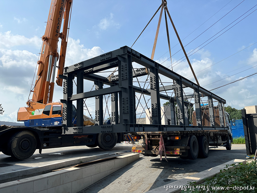 엘리베이터실 조성을 위한 철골조 현장 도착.