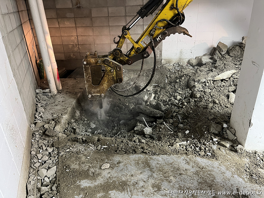 지하 스라브, 즉 지상1층 바닥 엘리베이터가 운행될 공간을 절개해야 합니다.