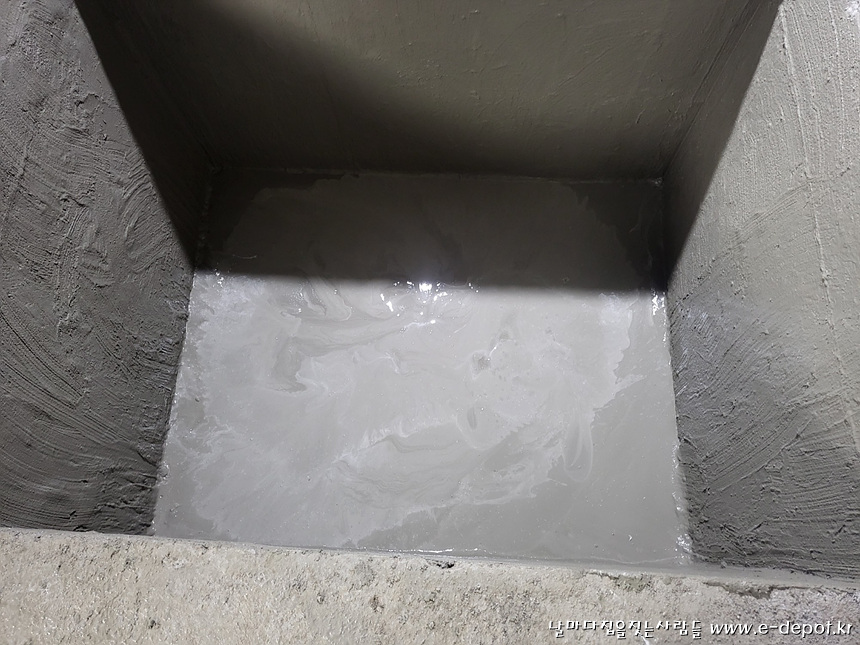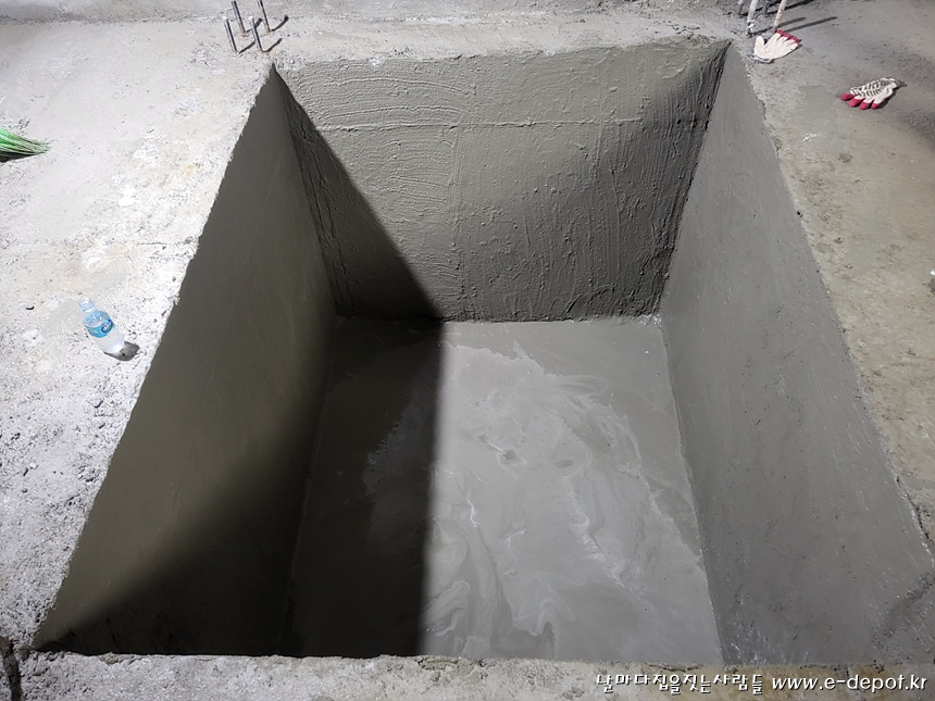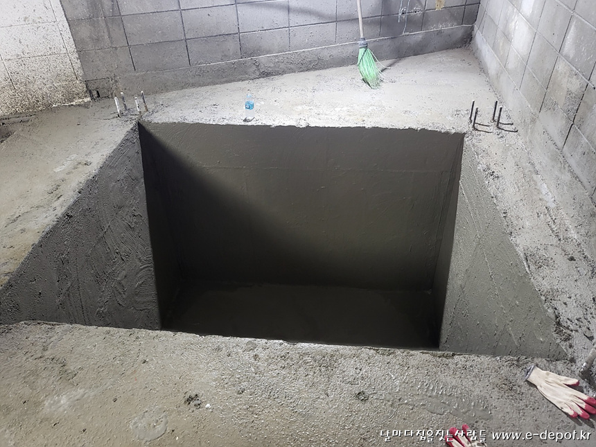 엘리베이터 PIT층 콘크리트 타설 후 방수작업까지 마무리 한 사진입니다.