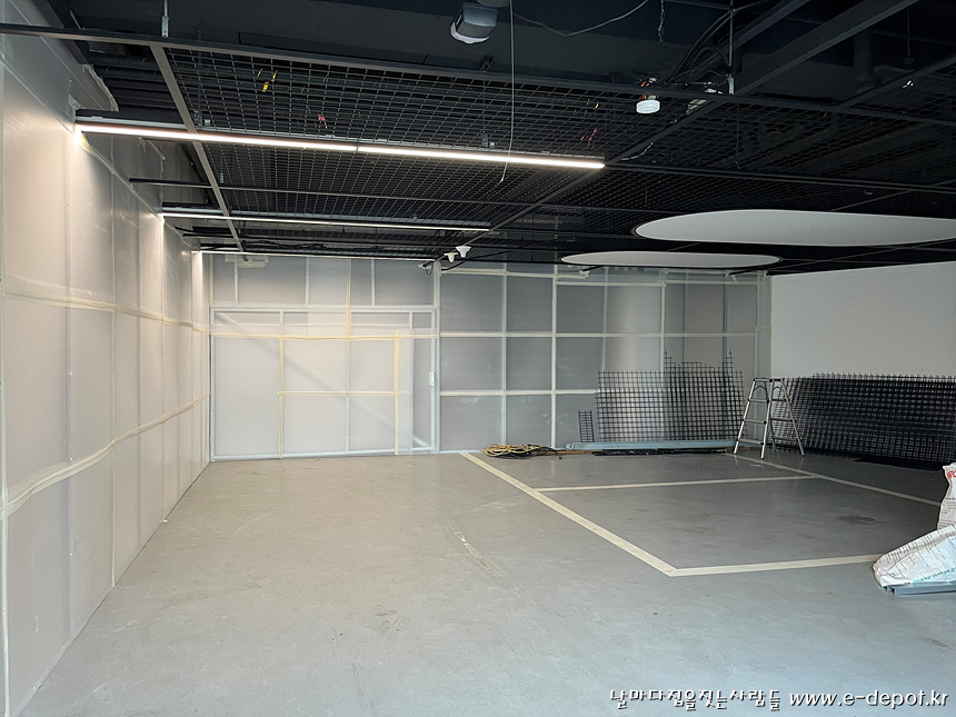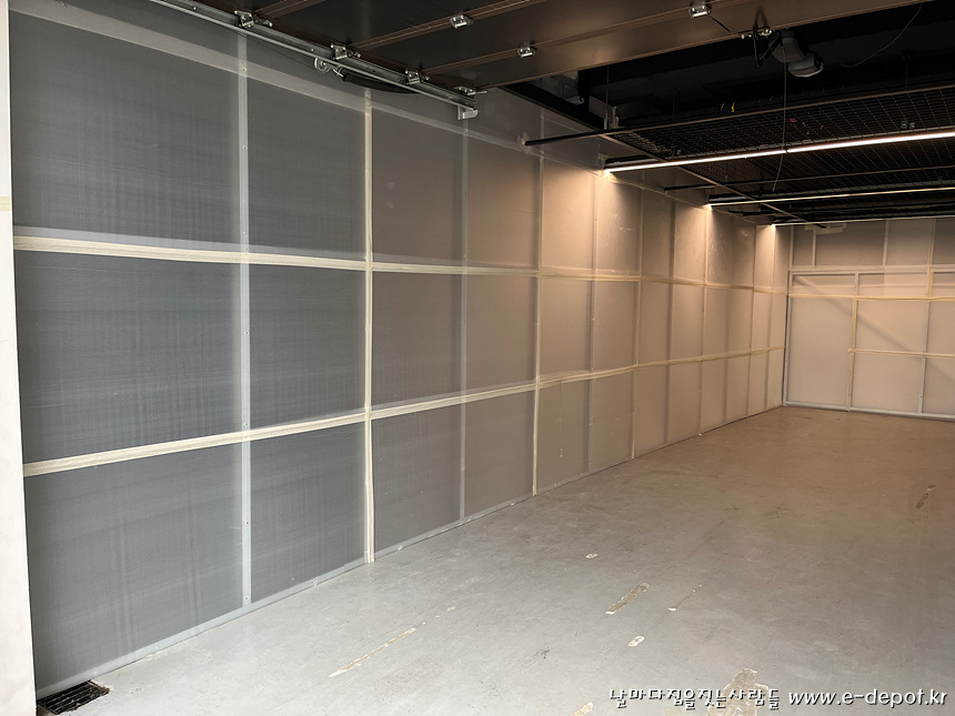 지하 엘리베이터 PIT층을 만들기 위한 철거 및 터파기를 하기 전 분진방지를 위한 임시 칸막이벽을 먼저 설치하였습니다.
