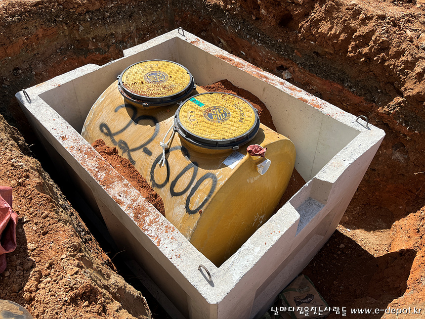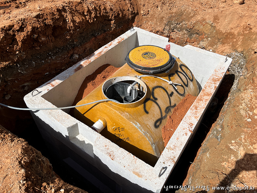 정화조는 위치에 맞춰 설치가 되면 곧바로 물을 채워주도록 합니다.