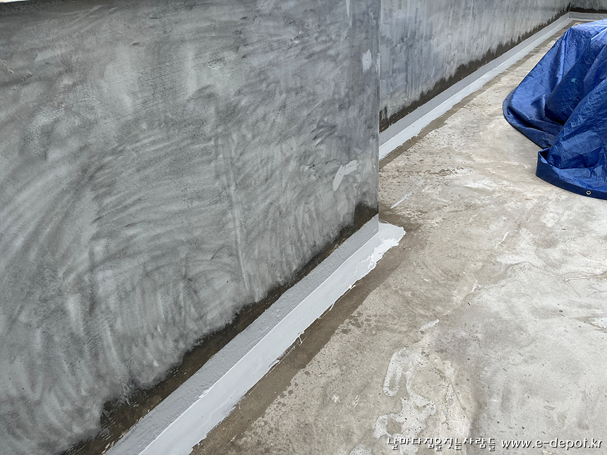 코너부위와 바닥에 초속경 방수를 마친 사진입니다.