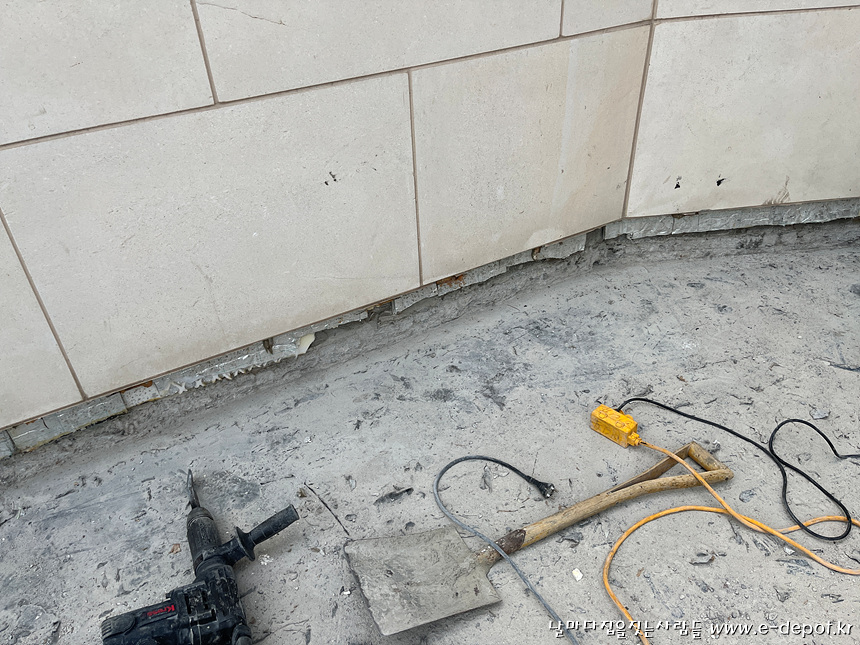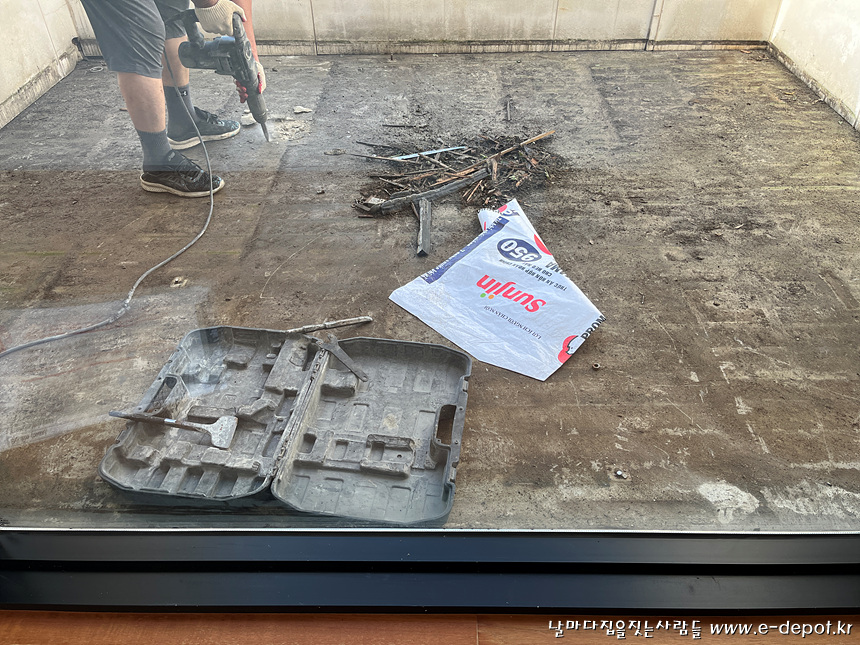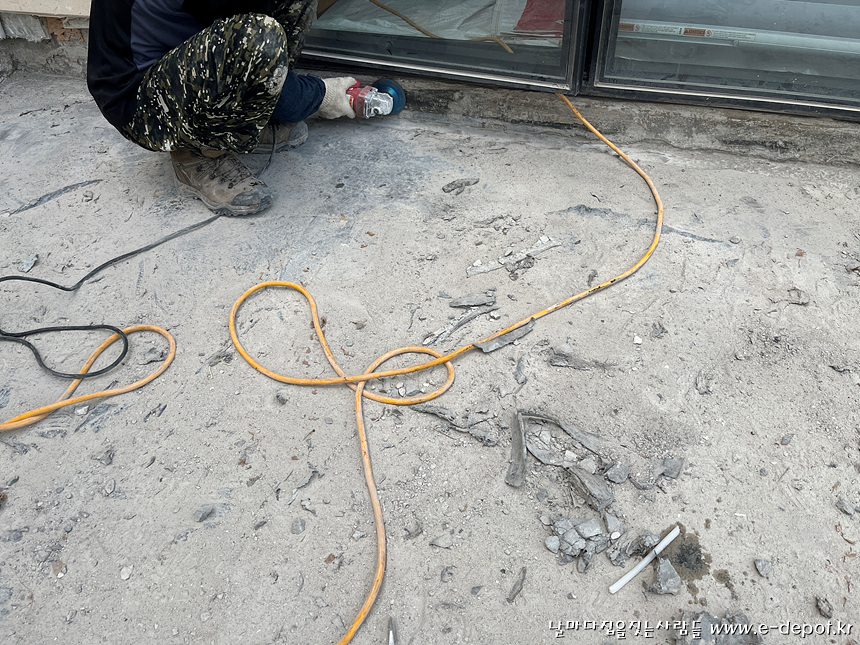 누름콘크리트 제거 후 기존 구체 콘크리트면을 깨끗이 정리하도록 합니다.