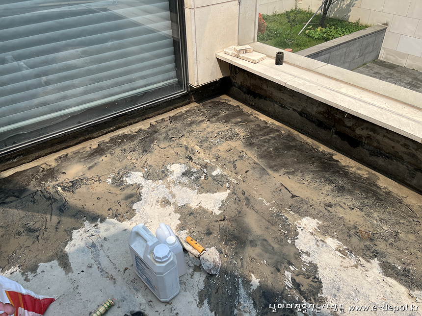 지붕층은 기존의 석재타일을 제거 한 후 방수를 진행하였습니다.