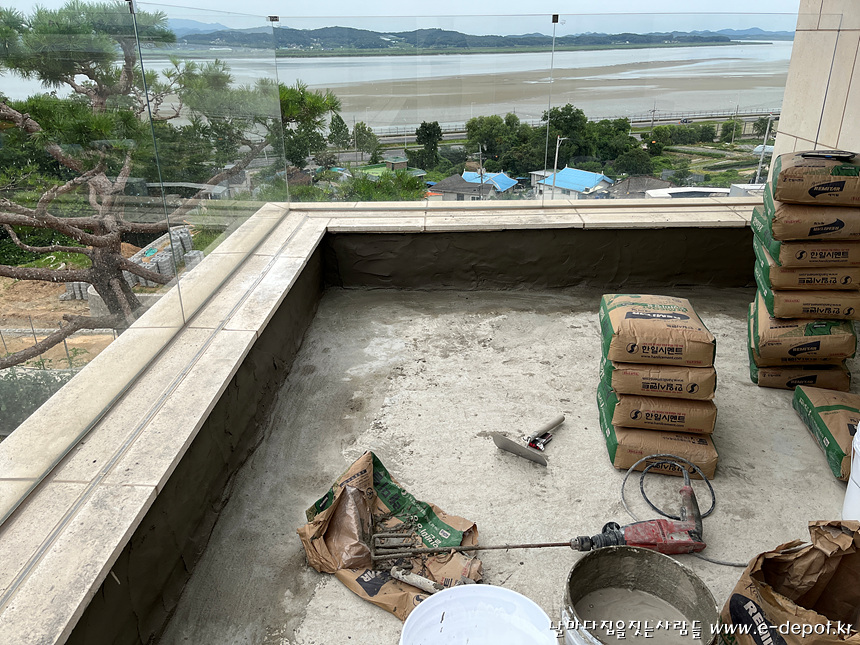 발코니 바닥은 초속경방수를 하였습니다.