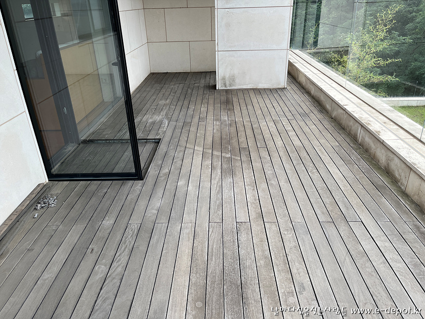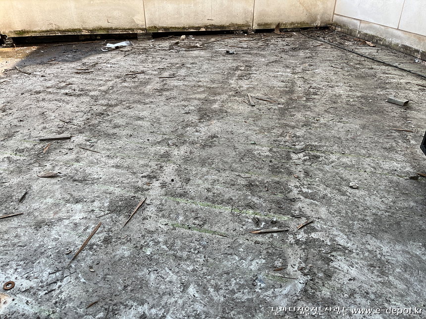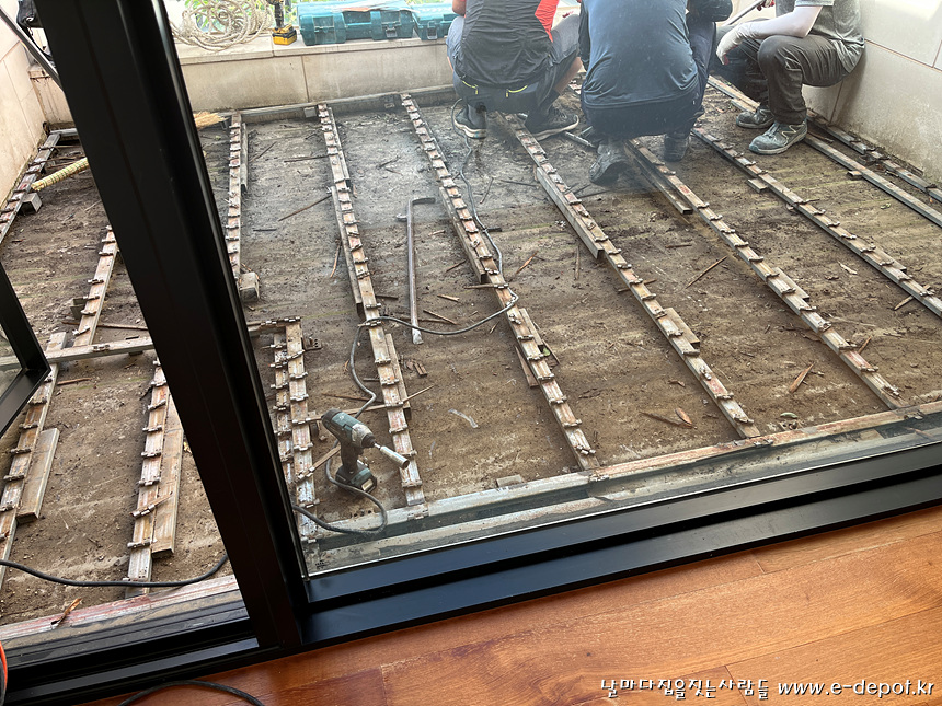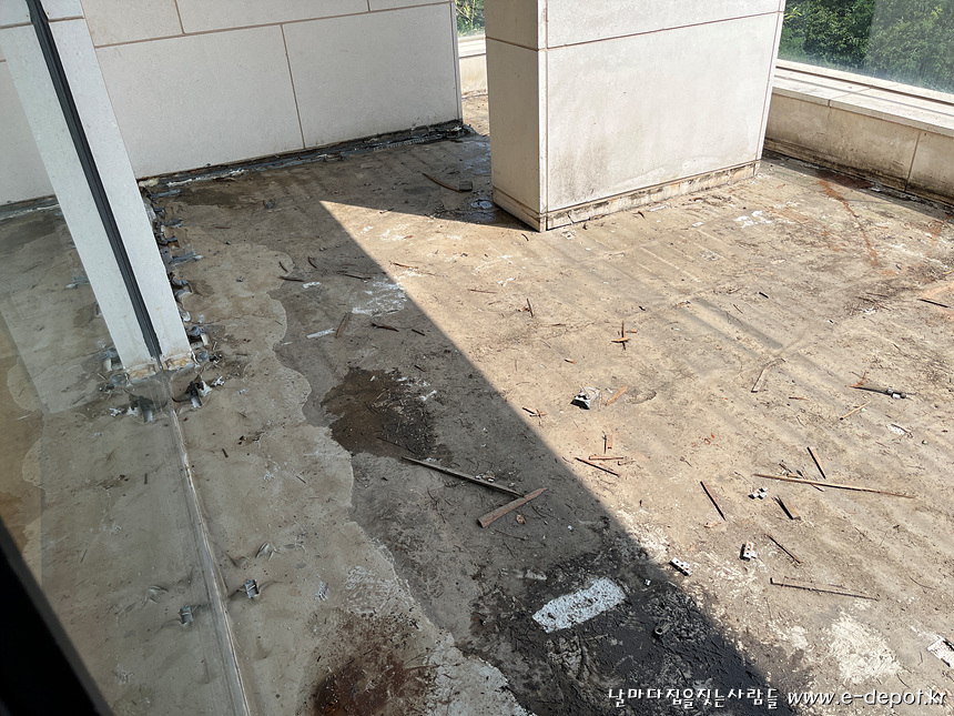 발코니의 데크 바닥 철거전 사진입니다.