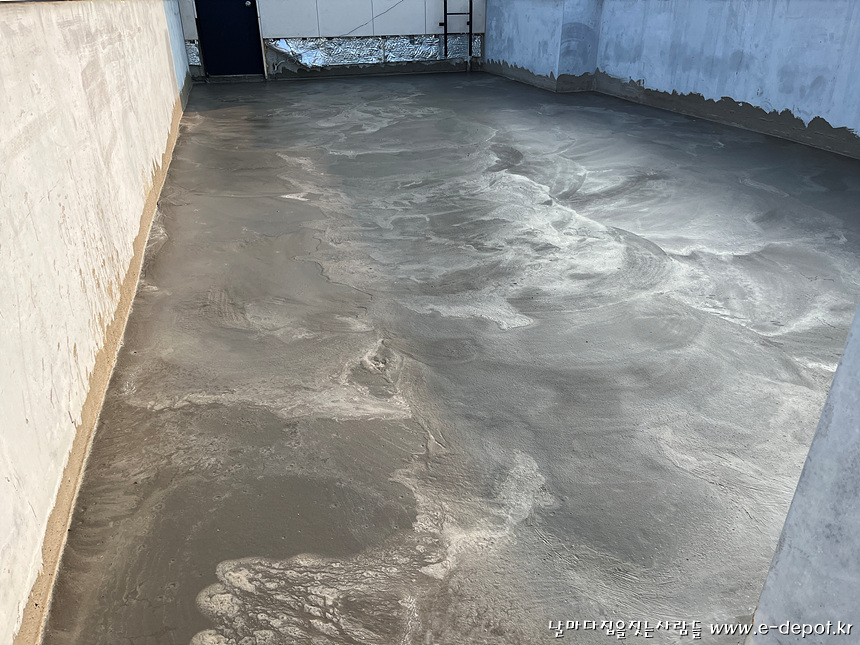 발코니 코너부위 1차 시멘트 액체방수 사진입니다.